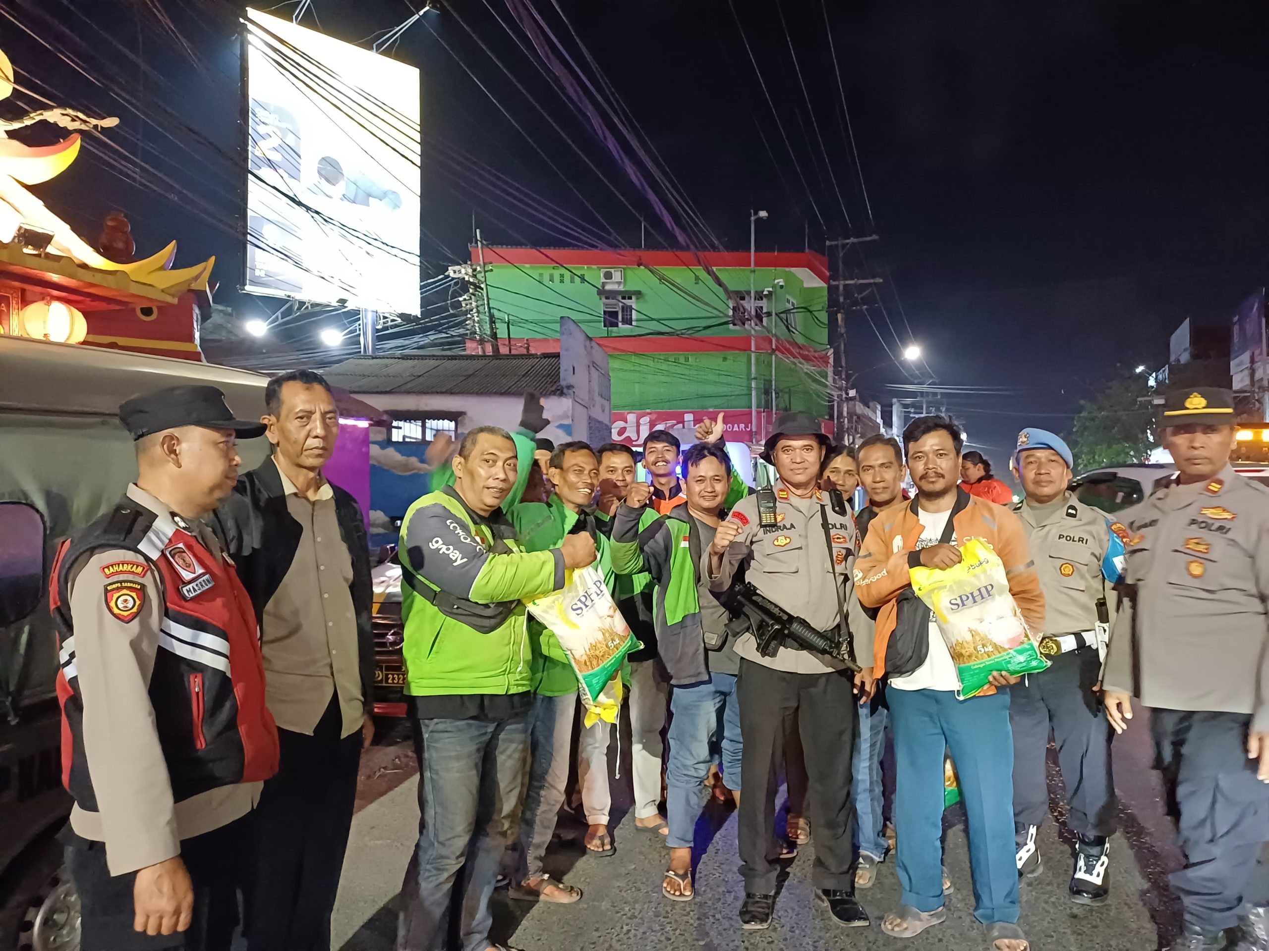 Sebagai wujud kepedulian sosial, Polsek Krian turut menyalurkan 20 sak beras SPHP kepada para driver ojol yang mangkal di sekitar Simpang Lima Krian. Kegiatan berlangsung lancar hingga selesai pada pukul 21.00 WIB dengan situasi tetap aman, tertib, dan kondusif.
