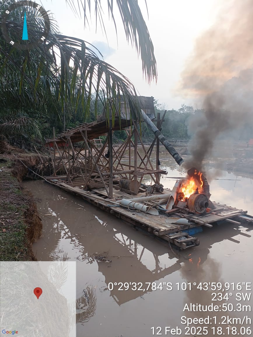 Meskipun tidak ada aktivitas penambangan saat pengecekan berlangsung, Polsek Kuantan Hilir tetap mengambil langkah tegas dengan melakukan pemusnahan terhadap ketiga unit rakit dompeng tersebut. Ketiga unit ini di musnahkan dengan cara dirusak dan dibakar agar tidak dapat digunakan kembali,” ujar Kapolsek.