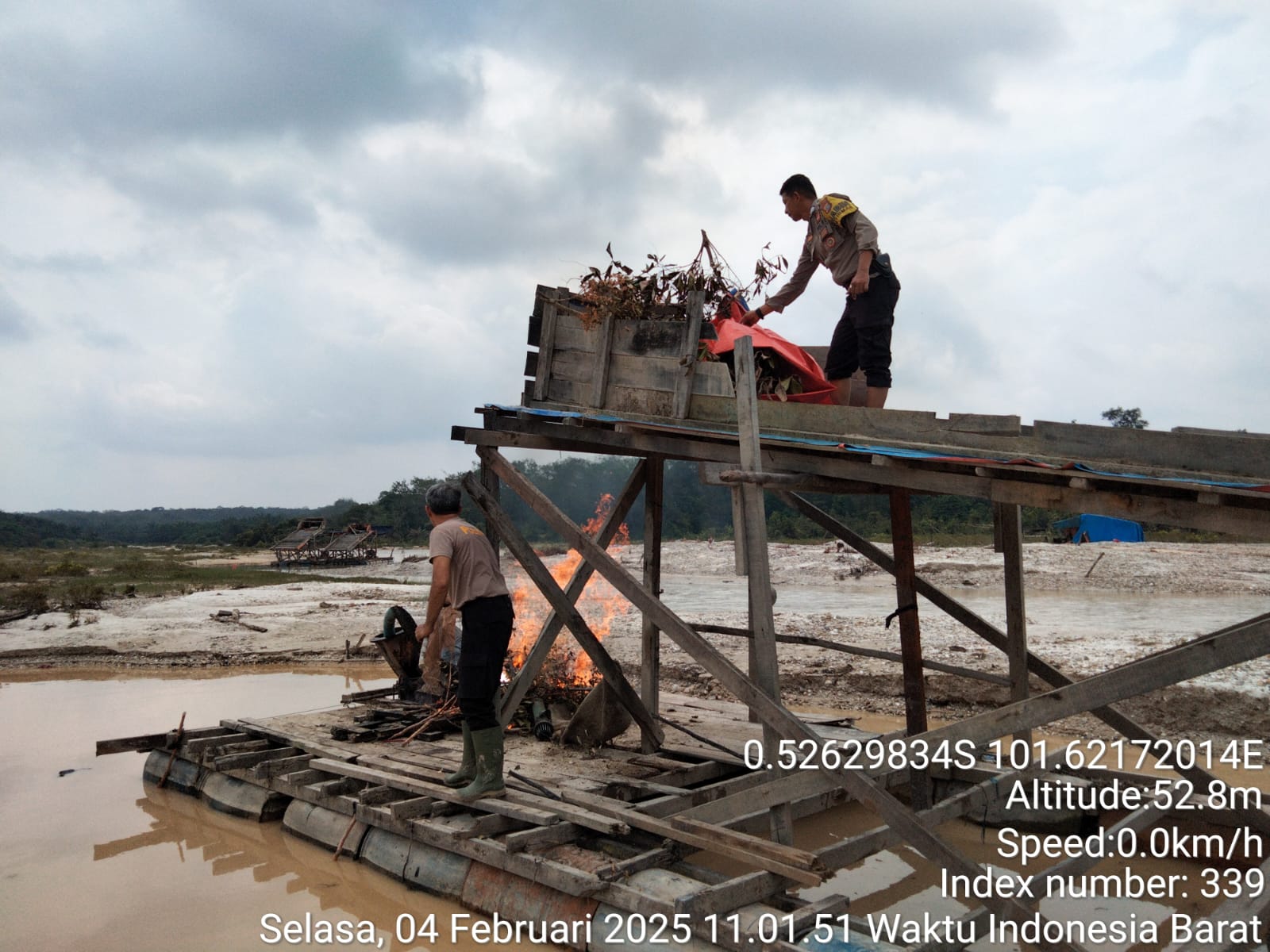 Patroli ini dilakukan sebagai respons atas laporan warga yang mengeluhkan keberadaan aktivitas PETI di wilayah tersebut, yang dinilai merusak lingkungan serta mengganggu ketertiban masyarakat. Sekira pukul 09.30 WIB, tim patroli yang dipimpin oleh Kapolsek Kuantan Tengah tiba di lokasi sebagaimana yang dilaporkan oleh warga. Setibanya di tempat kejadian perkara (TKP), petugas menemukan lima unit rakit PETI yang sudah dalam kondisi tidak beroperasi dan ditinggalkan oleh para pekerja.