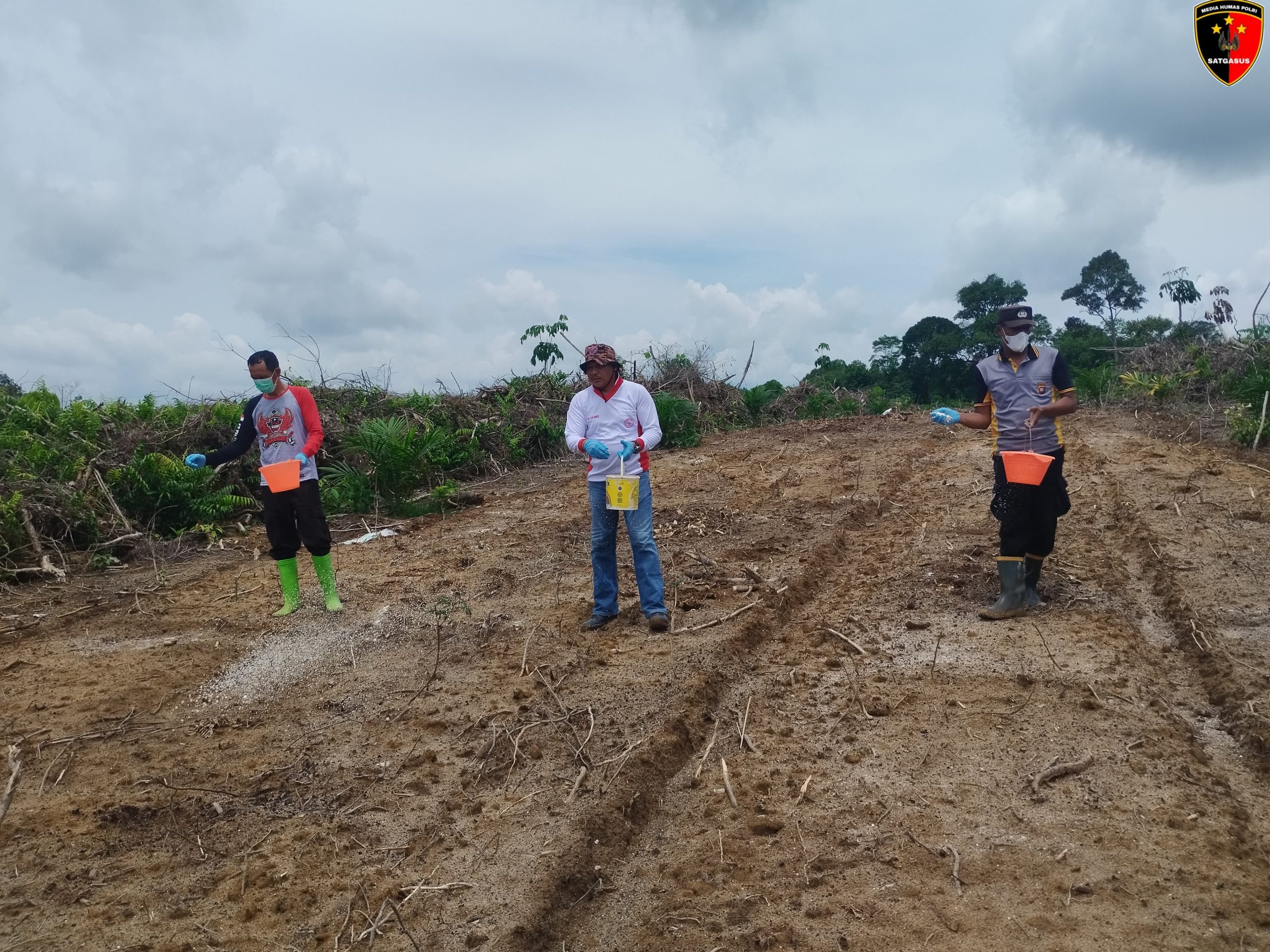 “kami sudah melakukan penggemburan tanah dan saat ini melakukan pemupukan dengan menggunakan pupuk dolomit di jalur tanam,” ucapnya.Kapolsek menambahkan luas lahan yang menjadi lahan percontohan ini kurang lebih sekitar 4 hektar dan pihaknya juga terus berkoordinasi dengan PPL Desa untuk melakukan pengolahan agar hasilnya nanti dapat lebih baik.