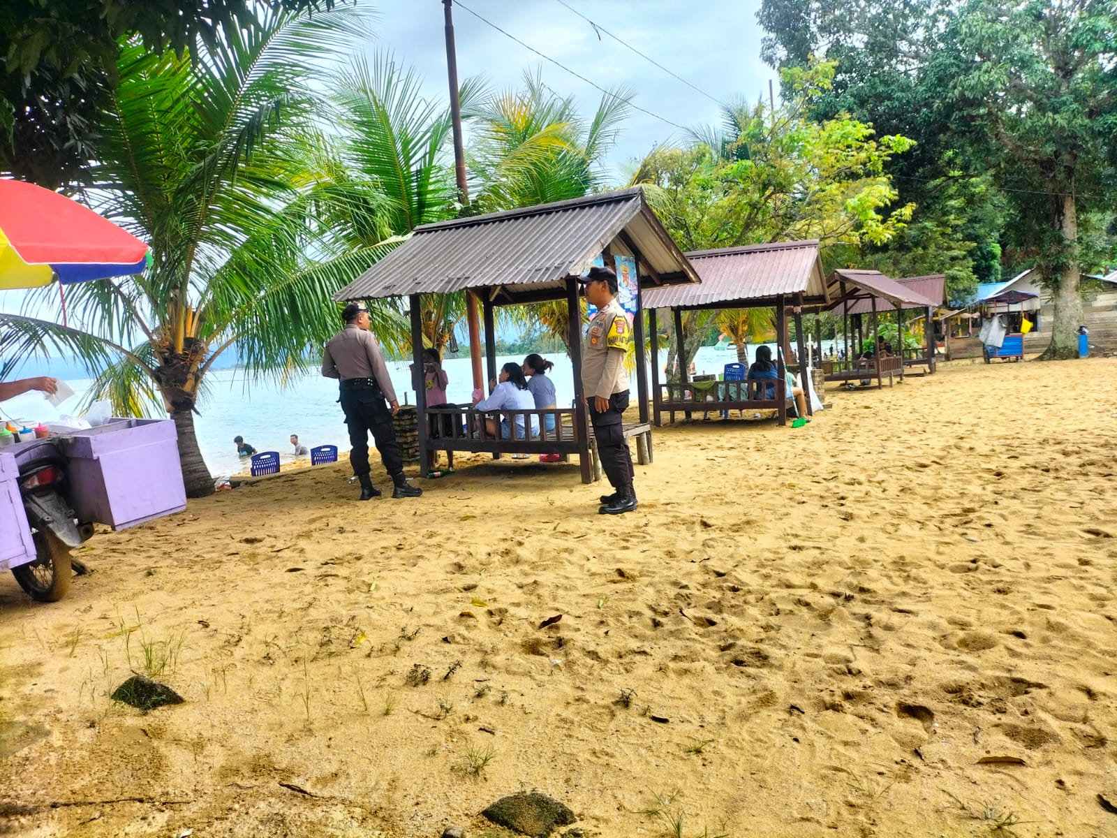 Selain melaksanakan patroli, petugas juga mengimbau pengunjung untuk menjaga barang berharga dan mematuhi aturan keselamatan di pantai. Hal ini dilakukan untuk mencegah terjadinya kejadian yang tidak diinginkan dan memastikan keselamatan pengunjung.