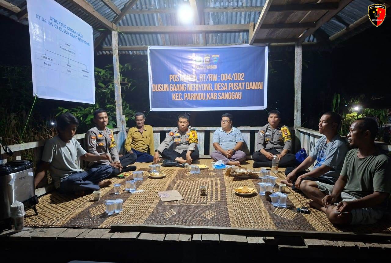 Polsek Parindu terus memperkuat sinergi dengan masyarakat melalui kegiatan sambang dan pembinaan di Pos Keamanan Lingkungan (Poskamling). Kegiatan tersebut berlangsung pada Rabu (1/10/2025) malam, bertempat di RT 004/RW 002, Dusun Gaang Neriyong, Desa Pusat Damai, Kecamatan Parindu, Kabupaten Sanggau.