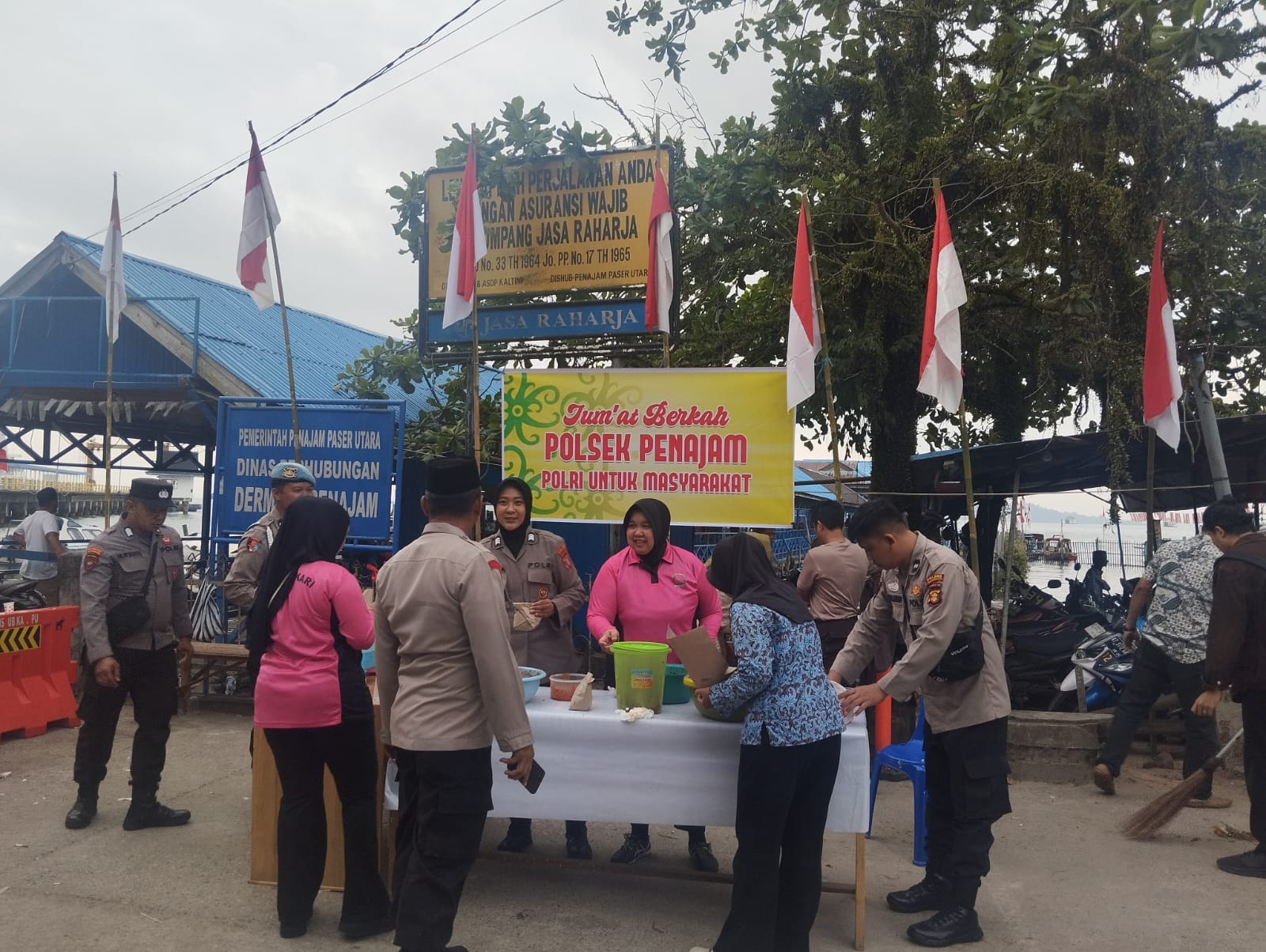 Suasana hangat terasa sejak pagi di area Pelabuhan Speed Boat, Kelurahan Penajam, Kabupaten Penajam Paser Utara, saat jajaran Polsek Penajam menggelar kegiatan Jumat Berkah dan Jumat Curhat, Jumat (8/8/2025).