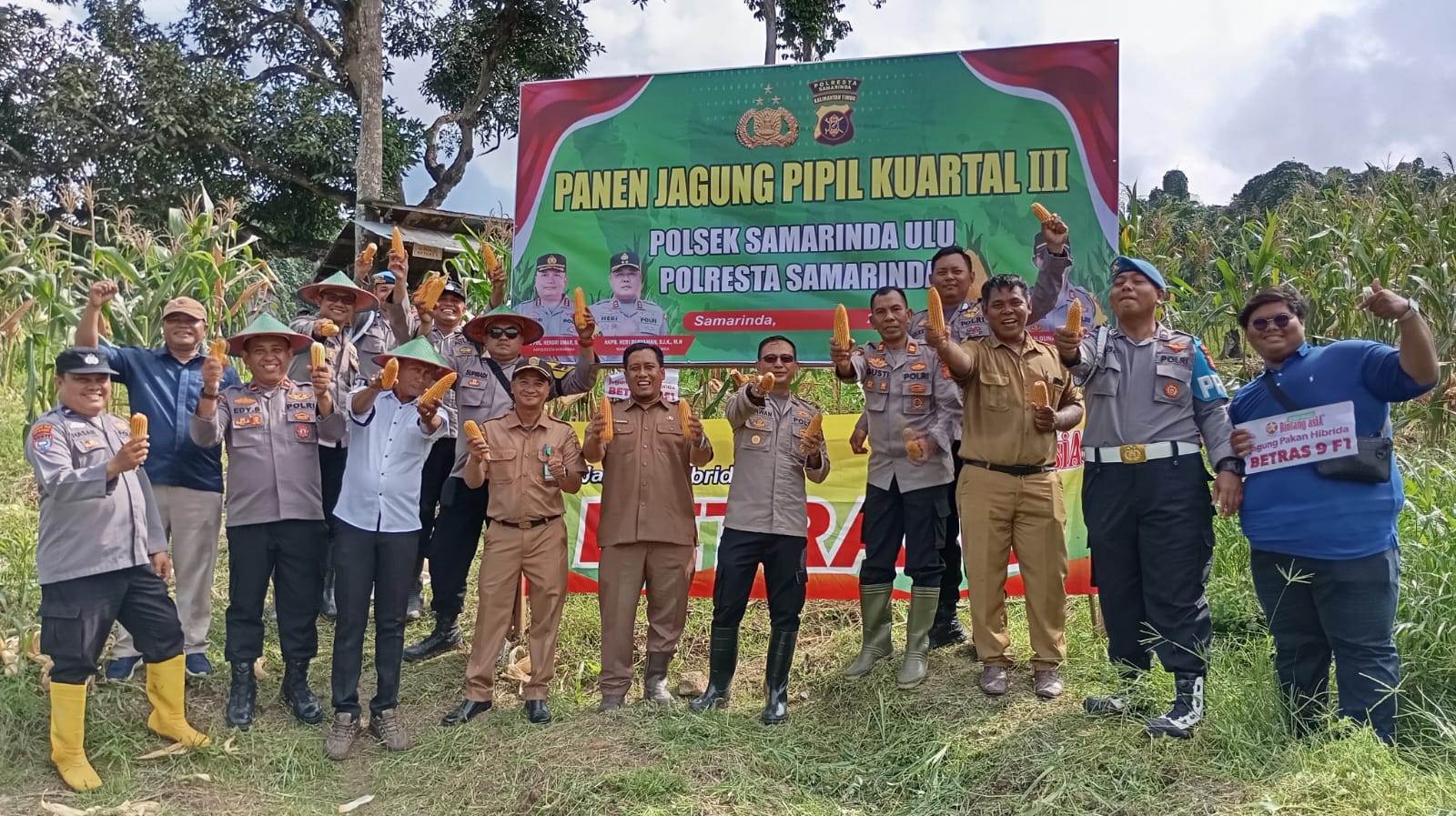 Polsek Samarinda Ulu melaksanakan kegiatan Panen Raya Jagung Pipil Kuartal III dalam rangka mendukung program ketahanan pangan Polresta Samarinda. Kegiatan berlangsung di Jalan Nusyirwan Ismail (Ringroad 2) RT. 18, Kelurahan Bukit Pinang, Kecamatan Samarinda Ulu, Kota Samarinda pada Senin (29/09) pukul 08.30 WITA.
