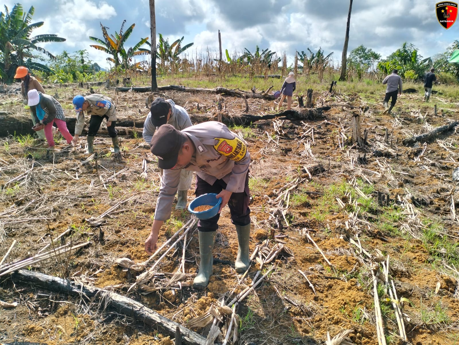Dalam upaya mendukung program ketahanan pangan nasional, Polsek Sandai Polres Ketapang melaksanakan kegiatan penanaman jagung perdana bersama Kelompok Tani Karya Bakti di Dusun Sumber Rejo, Kecamatan Sandai, Kabupaten Ketapang, pada (02/05).