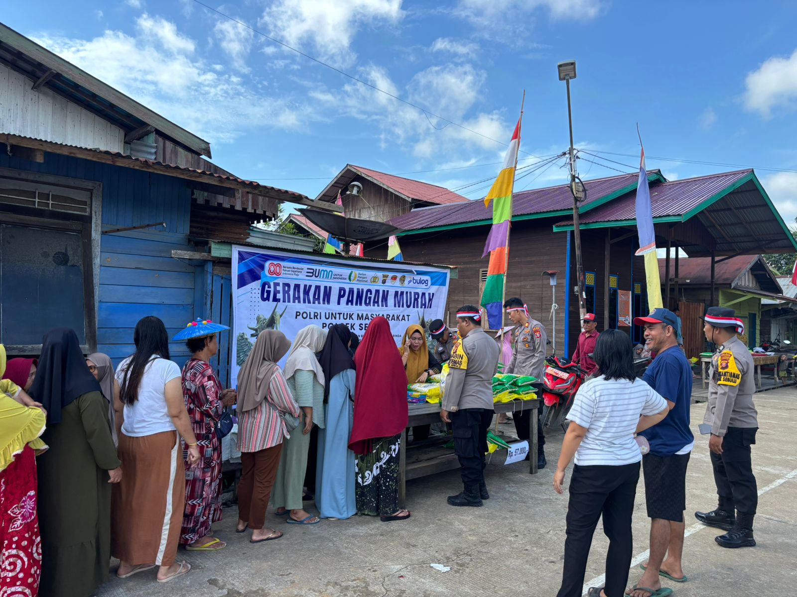 Polsek Sebulu menggelar kegiatan Gerakan Pangan Murah (GPM) di Lapangan Sosial Desa Sebulu Ilir, Kecamatan Sebulu, Kabupaten Kutai Kartanegara, Kamis (14/8/2025) pagi. Kegiatan ini bertujuan membantu masyarakat mendapatkan kebutuhan pokok dengan harga terjangkau.