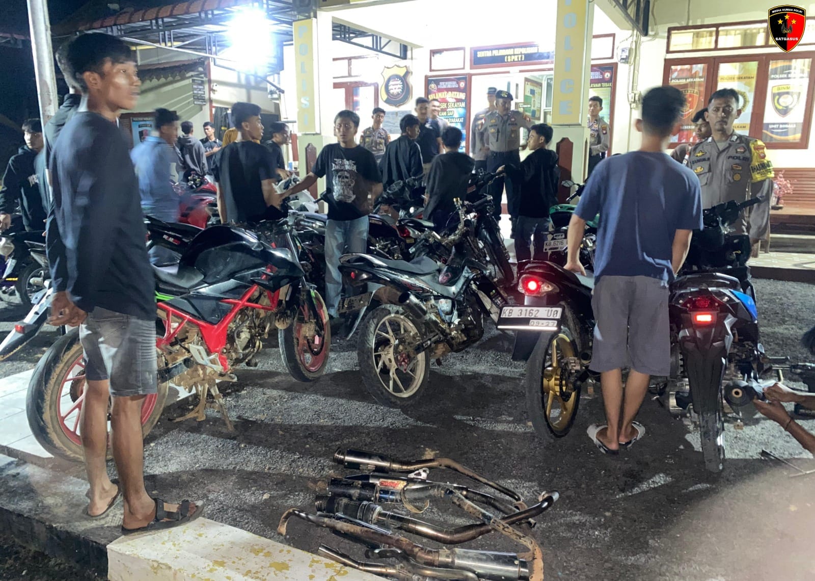 Polsek Sekayam Gelar Razia Malam di Perbatasan 35 Kendaraan Knalpot Brong Ditindak Penyelundupan Diantisipasi