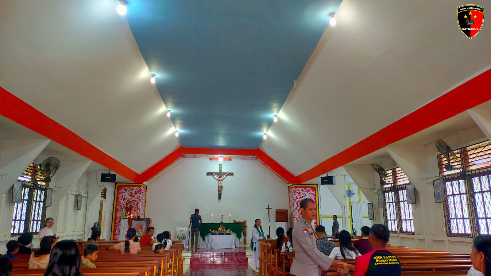 Kapolsek Sungai Laur AKP Elman Pasaribu, S.H. melalui Bhabinkamtibmas Aiptu Suhiro Pakpahan melaksanakan kegiatan Minggu Kasih di Gereja Santo Fransiskus, Desa Bengaras, Kecamatan Sungai Laur, Kabupaten Ketapang, Minggu 02 November 2025.