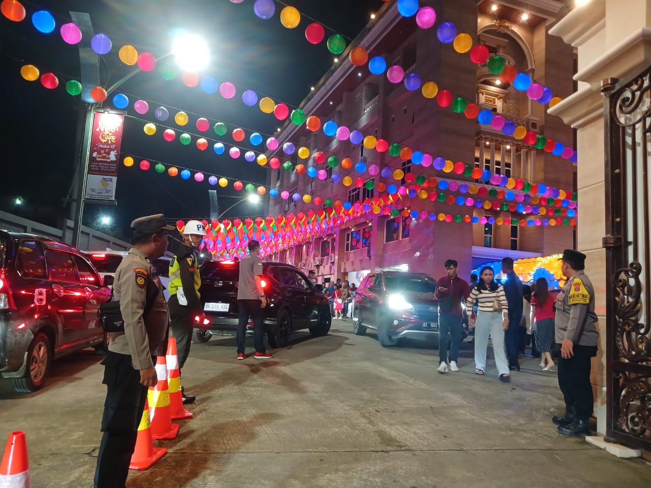 Jajaran Polsek Sungai Pinang Polresta Samarinda memastikan jalannya pembukaan Mooncake Festival ke-VII Tahun 2025 di Buddhist Center Kalimantan Timur (Maha Vihara Sejahtera Maitreya Samarinda) berlangsung aman, tertib, dan kondusif, Sabtu (4/10/2025) malam.
