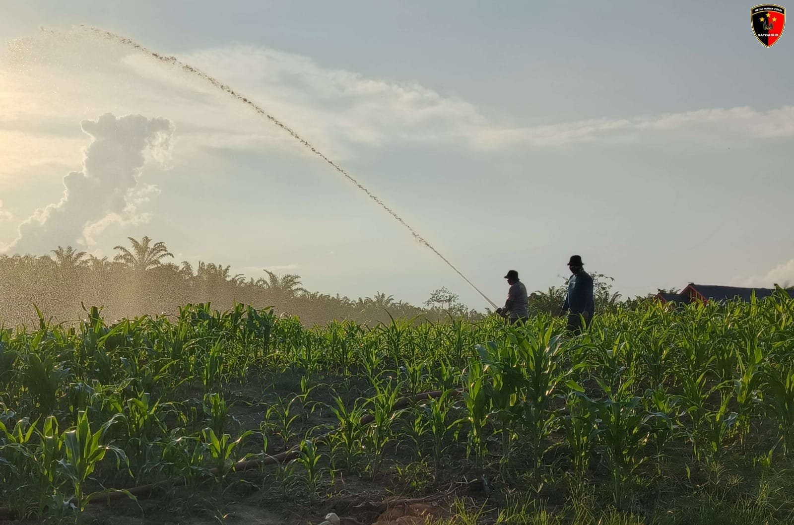 Selain melakukan pengecekan terhadap pertumbuhan tanaman, personel Polsek juga melaksanakan penyemprotan air secara manual untuk menjaga kelembaban tanah. Langkah ini dilakukan sebagai bentuk antisipasi terhadap kekeringan, mengingat intensitas hujan dalam beberapa pekan terakhir terbilang sangat rendah.