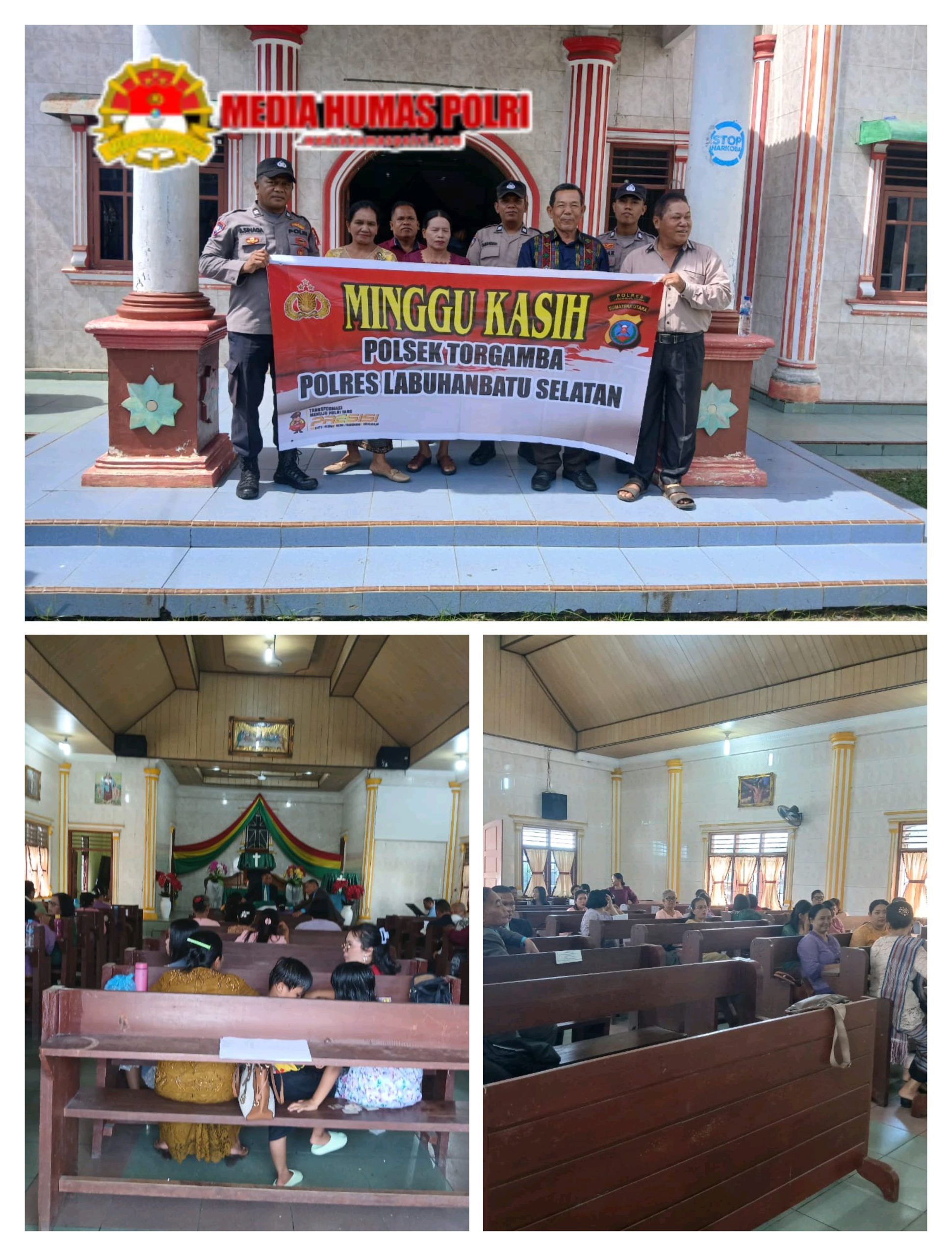 Polsek Torgamba, Polres Labuhanbatu Selatan melaksanakan kegiatan *Minggu Kasih*, sebuah program dari Kapolda Sumut yang bertujuan mempererat hubungan antara polisi dan masyarakat, serta menyampaikan pesan-pesan kamtibmas. Kegiatan ini berlangsung pada Minggu (3/11/2024), di Gereja GKPS Cikampak, Desa Aek Batu, Kecamatan Torgamba, Kabupaten Labuhanbatu Selatan, dengan dihadiri sekitar 105 jemaat gereja.