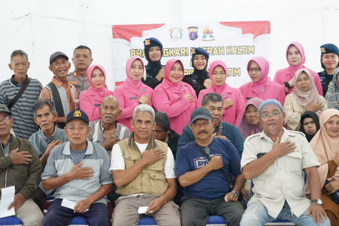 Bhayangkari Cabang Satbrimob dan Polwan Brimob Polda Kalimantan Timur menunjukkan kepedulian sosial melalui kegiatan bakti sosial yang menyentuh langsung masyarakat di Kelurahan Karang Jati dan Karang Rejo, Kecamatan Balikpapan Tengah, Kota Balikpapan.