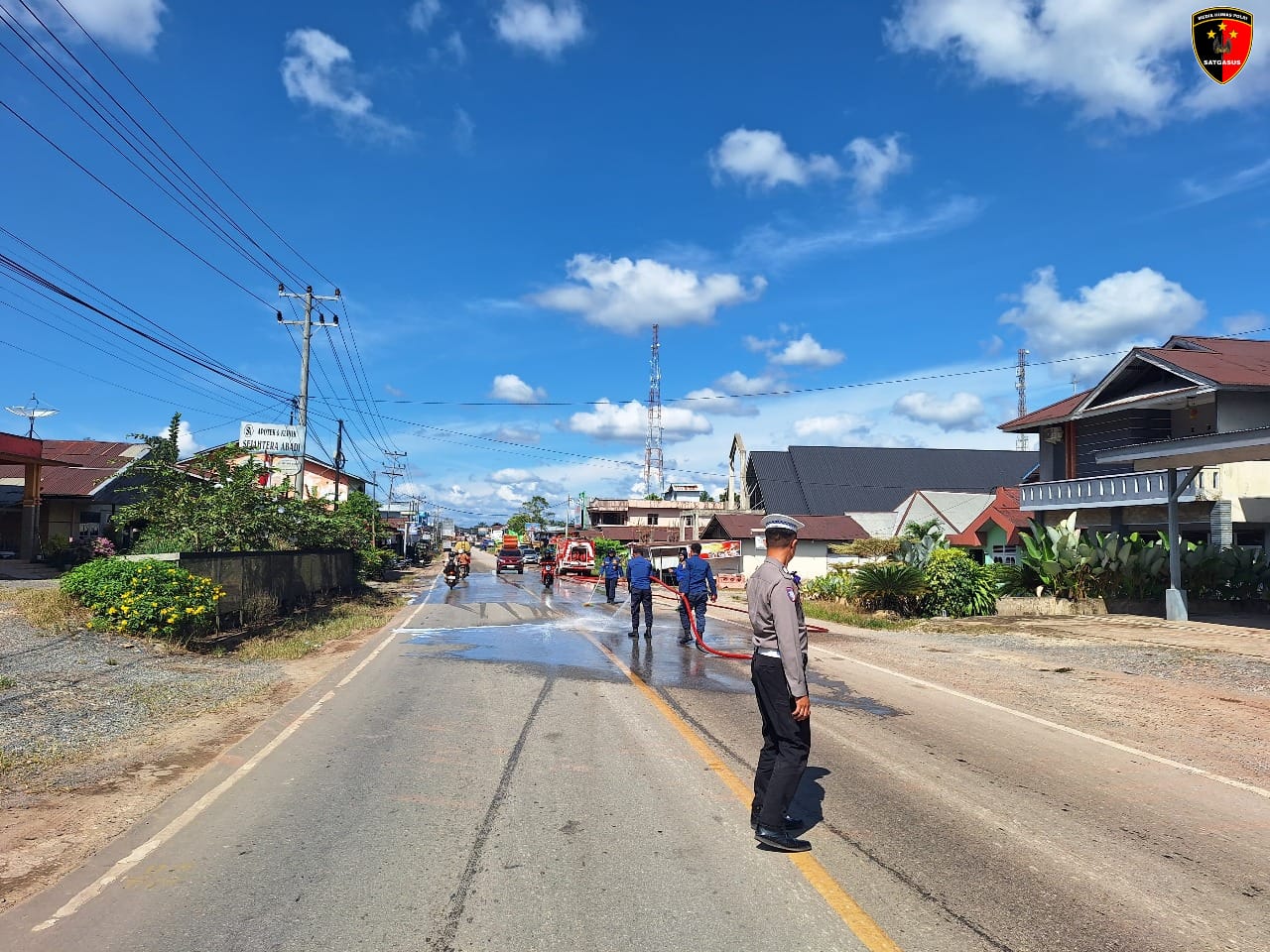 “Proses pembersihan dilakukan dengan penyemprotan air bertekanan tinggi oleh petugas Damkar pada area yang terkena solar,” kata Aipda Narto.