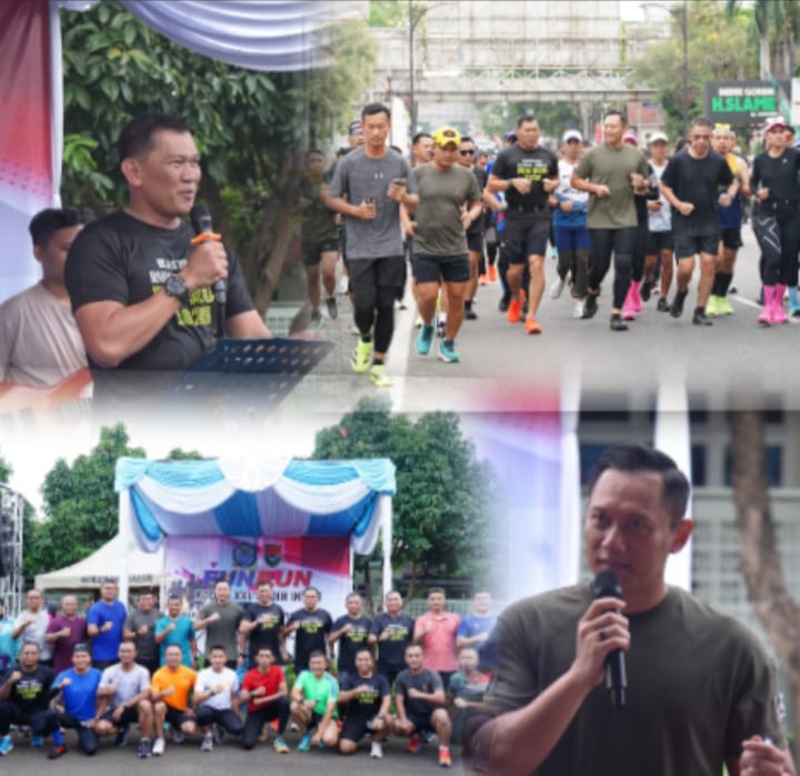 Bersama Menteri Koordinator Infrastruktur dan Pembangunan Republik Indonesia H. Agus Harimurti Yudhoyono, M.Sc., M.P.A., M.A., prajurit Kodam XXI/Radin Inten beserta jajaran mengikuti kegiatan olahraga bersama di Kota Bandar Lampung, Selasa (14/10/2025).