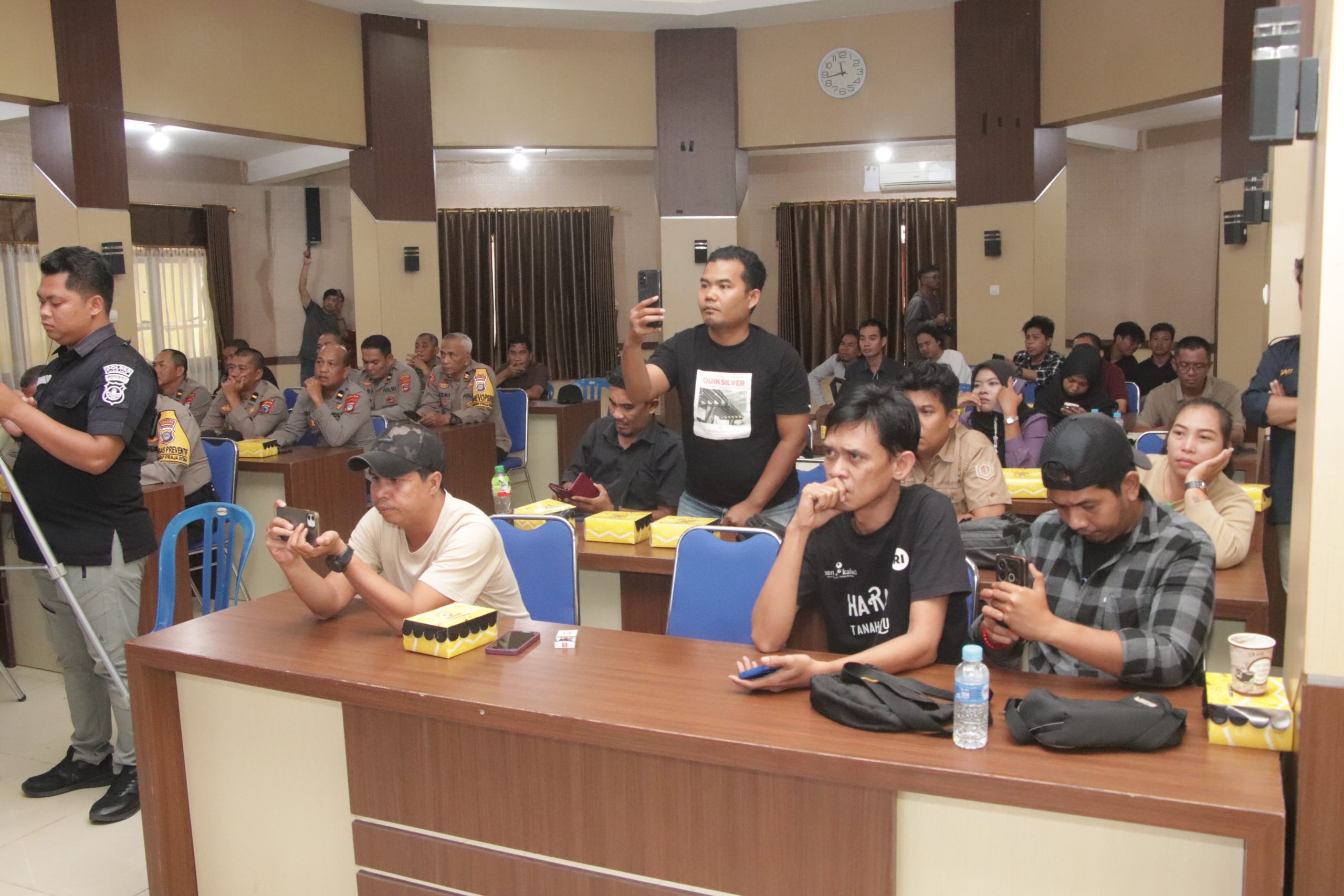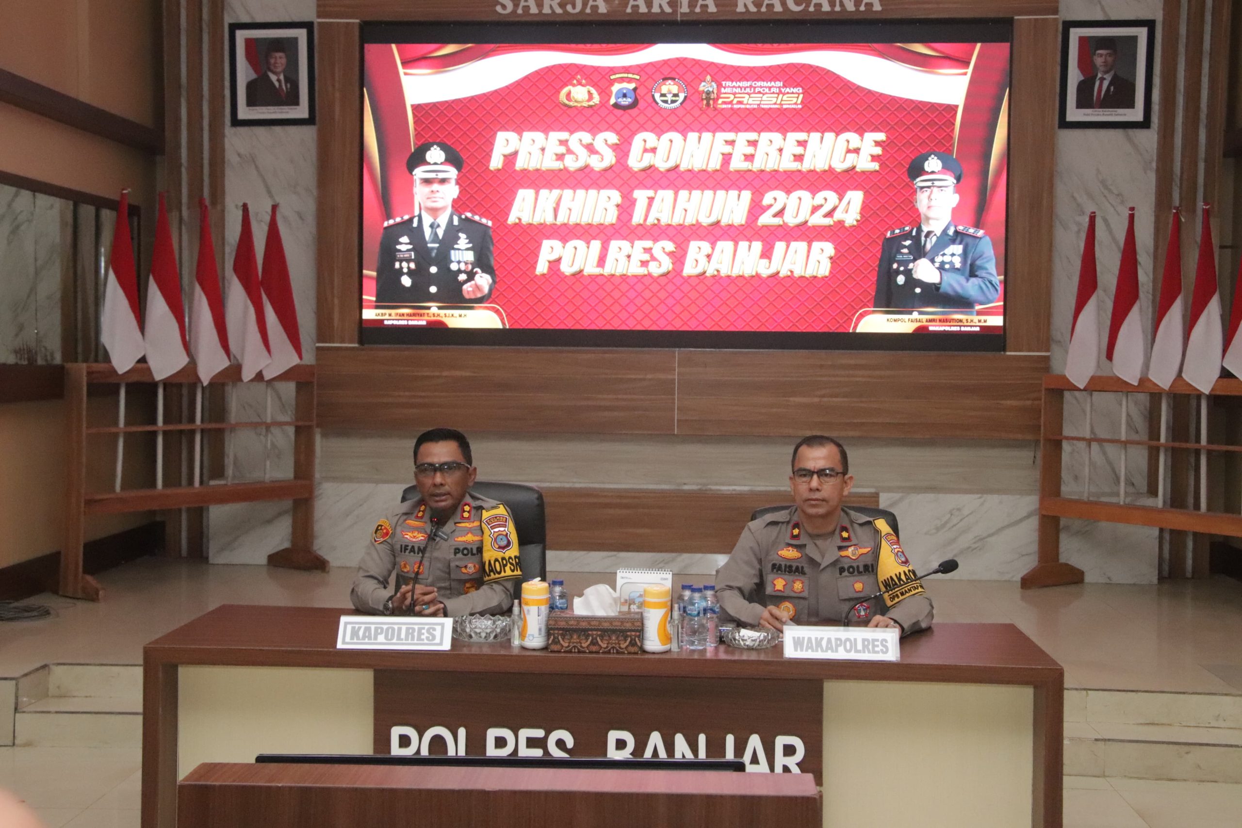 Polres Banjar Polda Kalsel menggelar Press Conference Akhir Tahun 2024 pada Selasa (31/12/2024) siang di Aula Sarja Arya Racana Polres Banjar. Kegiatan ini dipimpin oleh Kapolres Banjar, AKBP M. Ifan Hariyat, dan dihadiri Wakapolres, pejabat utama (PJU), perwira, anggota Polres Banjar, serta para awak media.