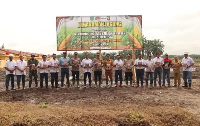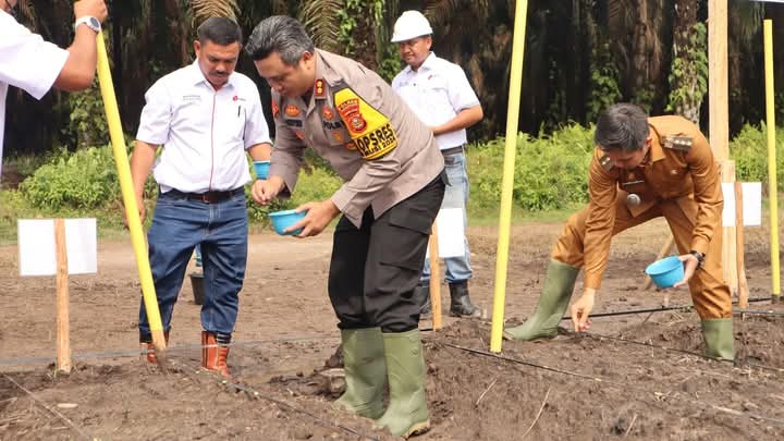 Kapolres Muba bersama PT. Gatri melakukan penanaman pohon jagung, dalam rangka mendukung ketahanan pangan.