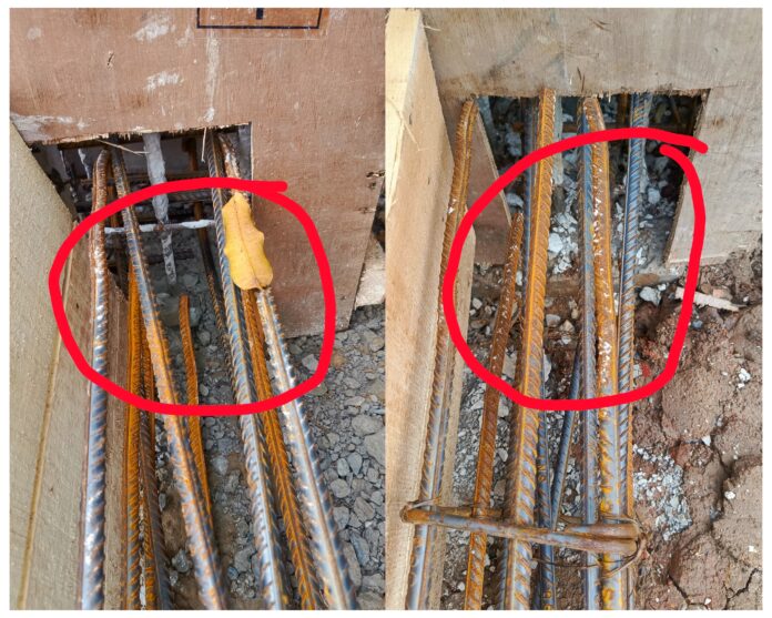 Temuan lain di lapangan menunjukkan bahwa sambungan antarbesi pada sloof tidak menggunakan hak tekuk sebagaimana mestinya, sehingga tidak memenuhi syarat ikatan struktur yang kuat antara satu batang besi dengan lainnya.