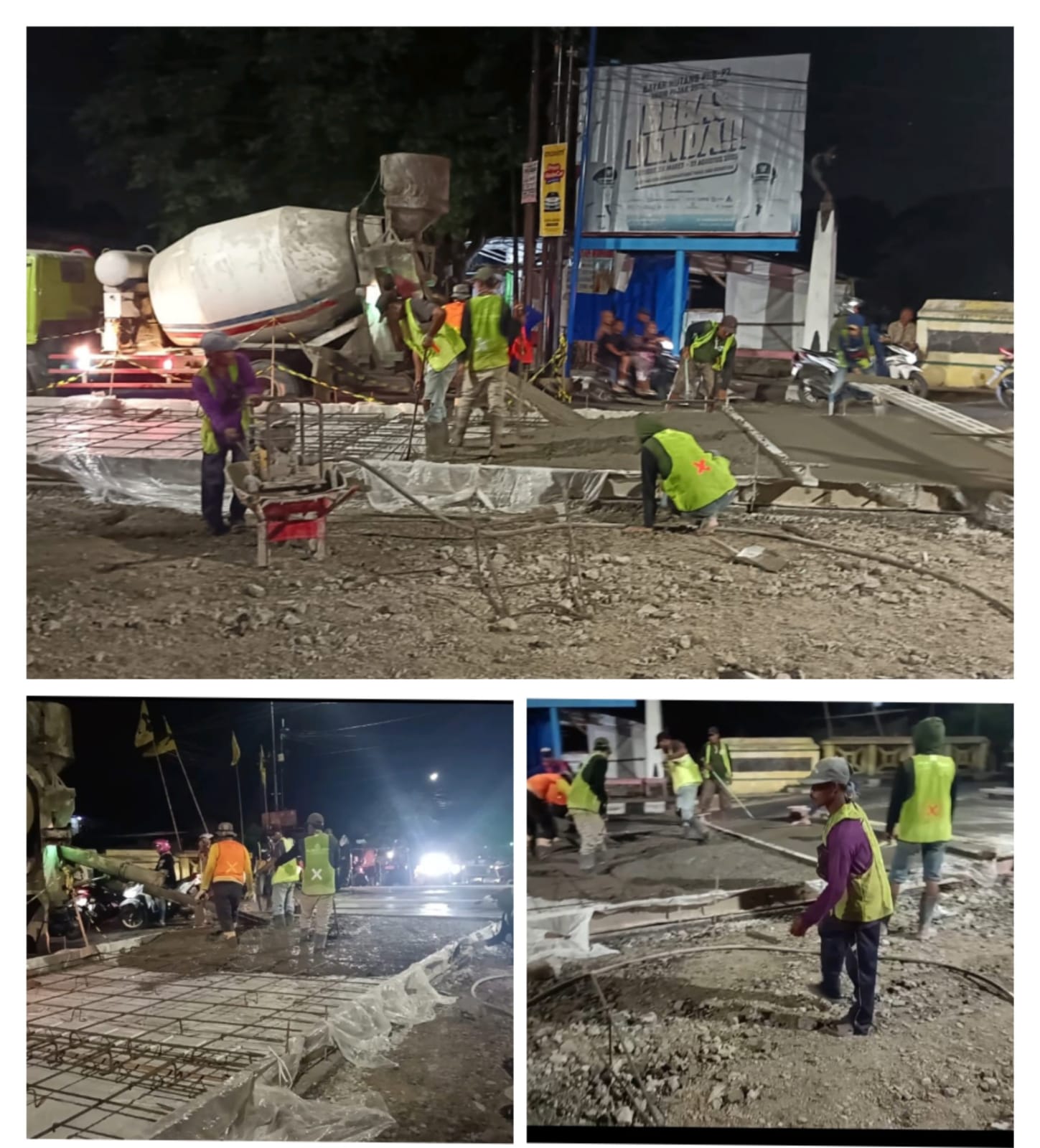 Pukul 21.00 WIB proses pengecoran peninggian jalan beton di area depan makam pahlawan jl pemuda demak di sebut sebut mengabaikan mutu dan kualitas karena mesin Vibrator hanya sebagai pajangan tidak di fungsikan sebagai mana mestinya yang seharusnya sebagai pemadat suatu cor beton agar hasilnya sesuai teknis yang benar tapi hanya di gunakan di titik bagian begesting bagian dalam sisi bahu jalan sedangkan di bagian bagian lokasi lain tidak tersentuh