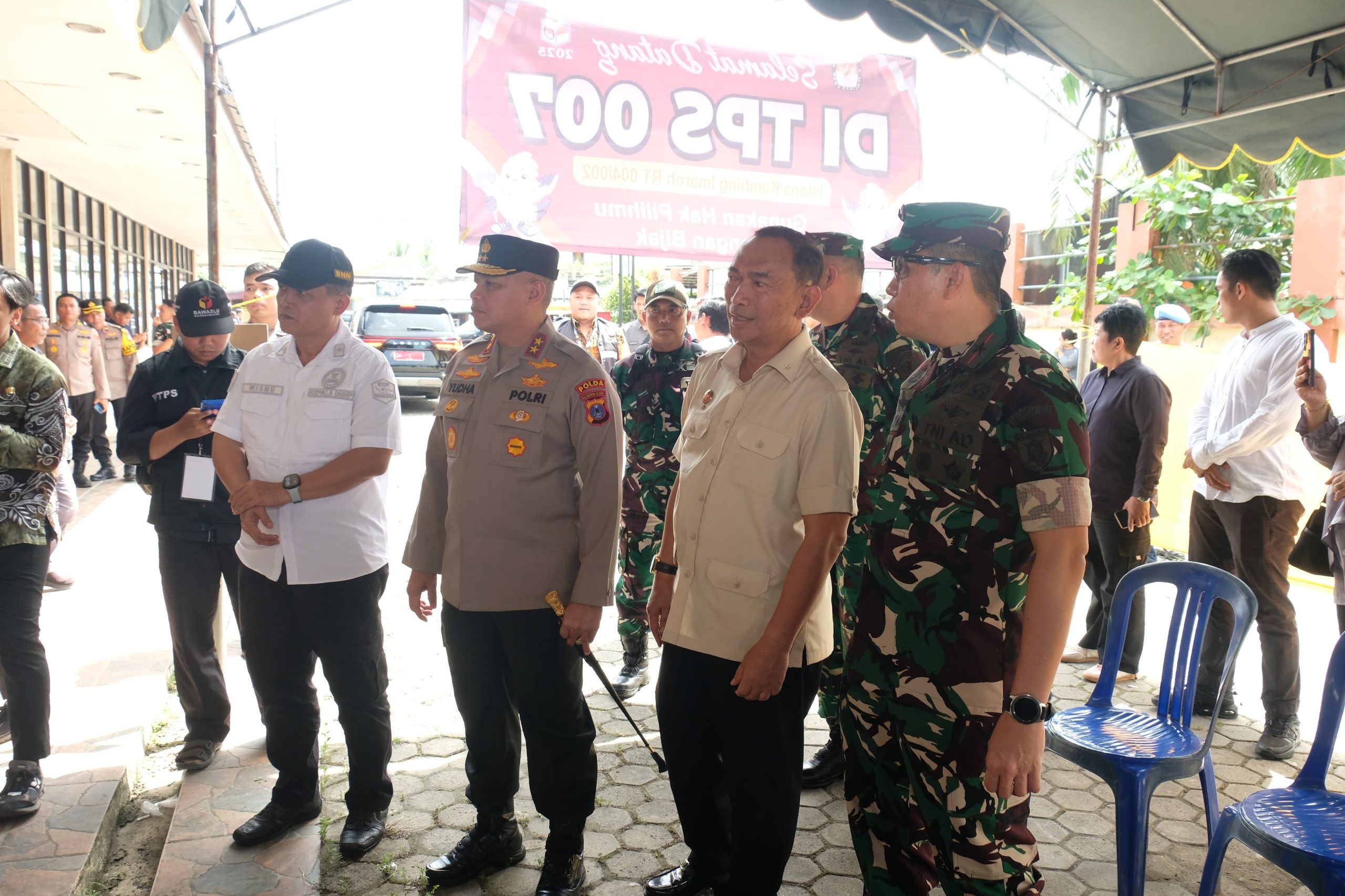 Kapolda Kalimantan Selatan, Irjen Pol Rosyanto Yudha Hermawan, S.I.K., S.H., M.H., turun langsung memonitoring pelaksanaan pemungutan dan perhitungan suara ulang (PSU) Pemilihan Walikota dan Wakil Walikota Banjarbaru Tahun 2025, Sabtu (19/4/2025).