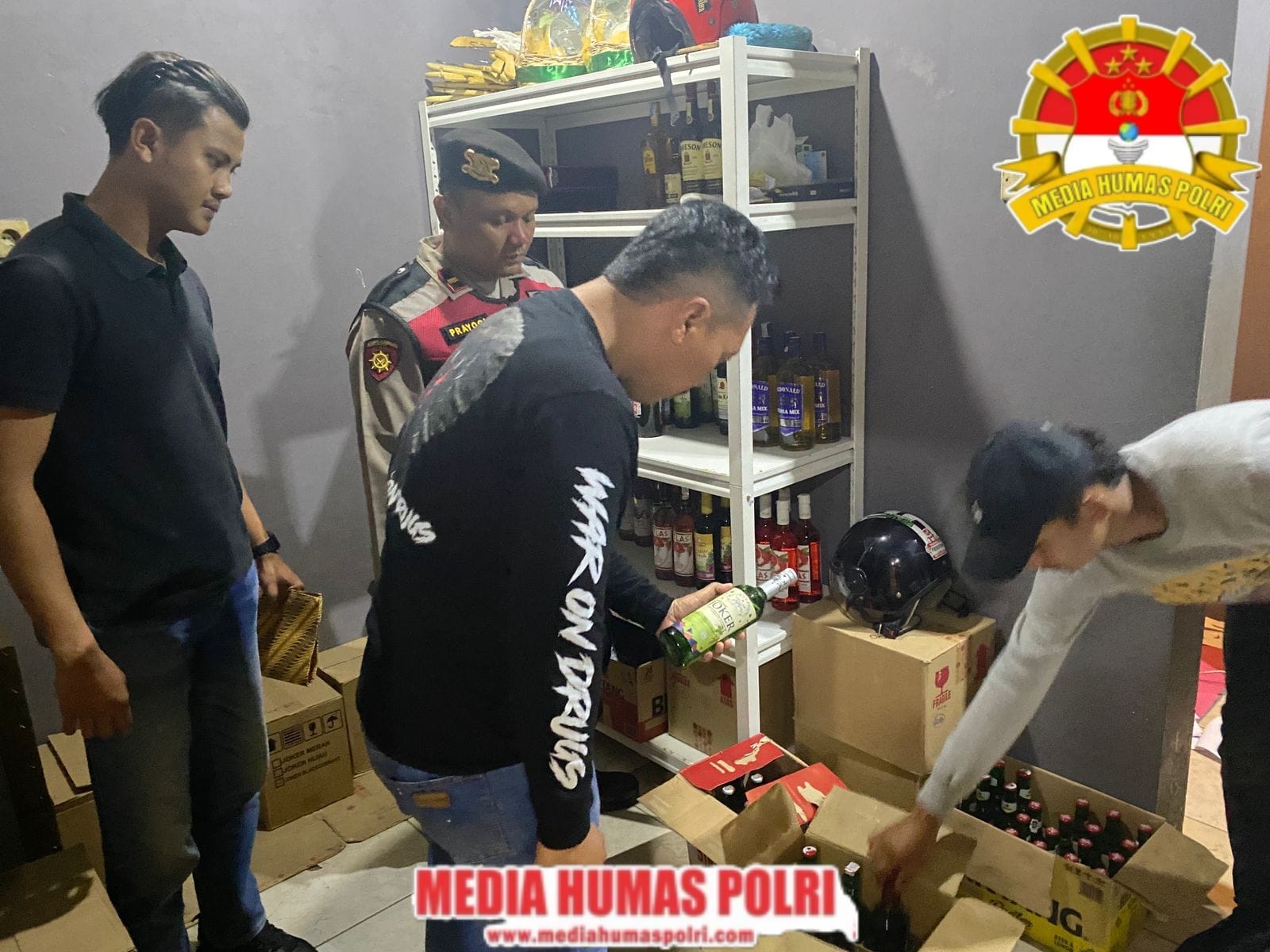 Dari lokasi, polisi menyita berbagai jenis minuman keras dengan total puluhan botol. Barang bukti yang diamankan antara lain: