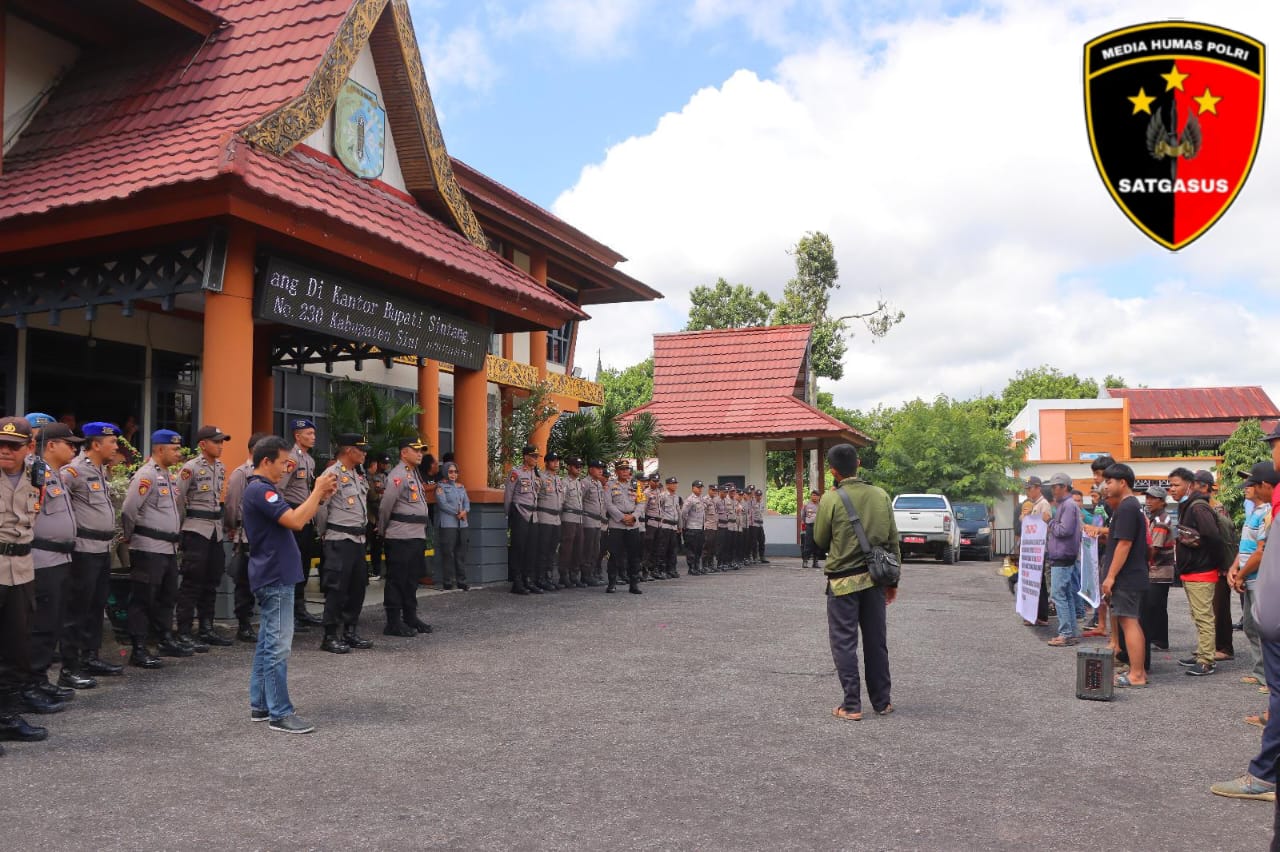 Puluhan personel Polres Sintang diterjunkan dalam pengamanan aksi damai warga Desa Sungai Raya Kecamatan Sepauk di halaman Kantor Bupati Sintang, Jumat ( 08/11/24 ) Pagi.