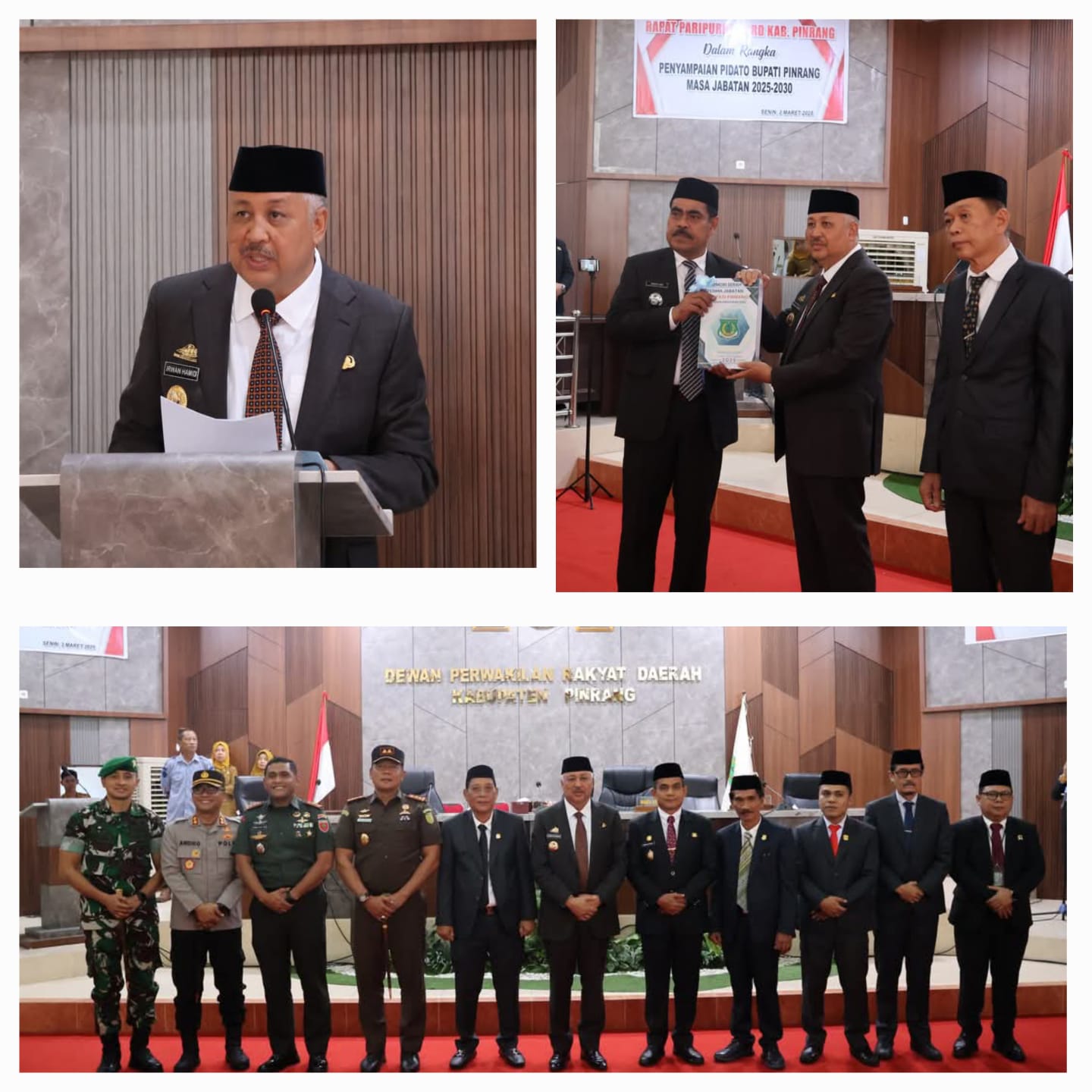 Dewan Perwakilan Rakyat Daerah (DPRD) Kabupaten Pinrang, menggelar Rapat Paripurna penyampaian pidato sambutan Bupati Pinrang periode 2025-2030 dan