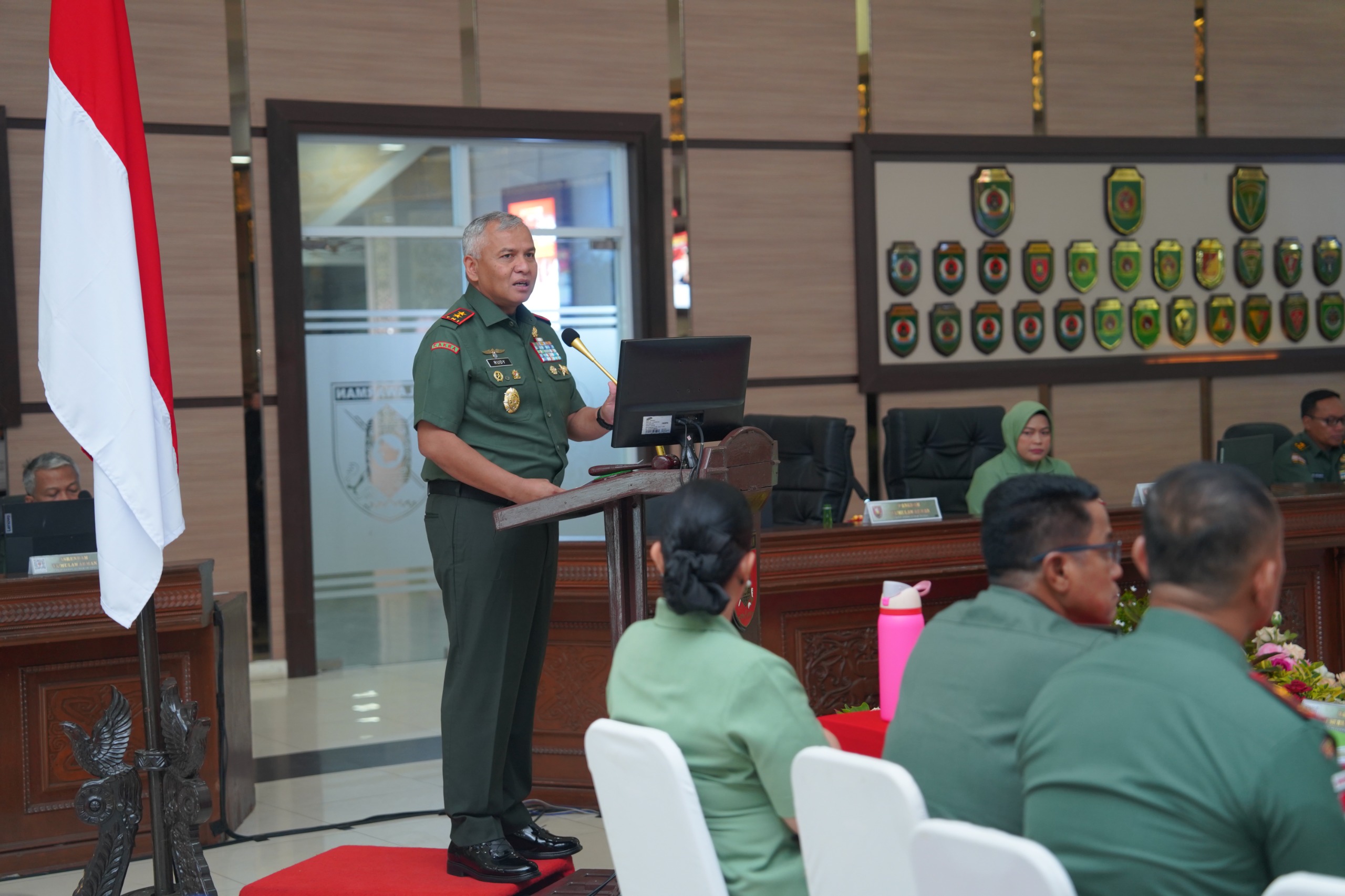Pangdam VI/Mulawarman, Mayor Jenderal TNI Rudy Rachmat Nugraha, S.I.P., M.Sc., memimpin langsung Rapat Pimpinan (Rapim) Kodam VI/Mulawarman Tahun 2025 yang digelar di Aula Makodam VI/Mulawarman, Balikpapan, pada Selasa (25/02/25).