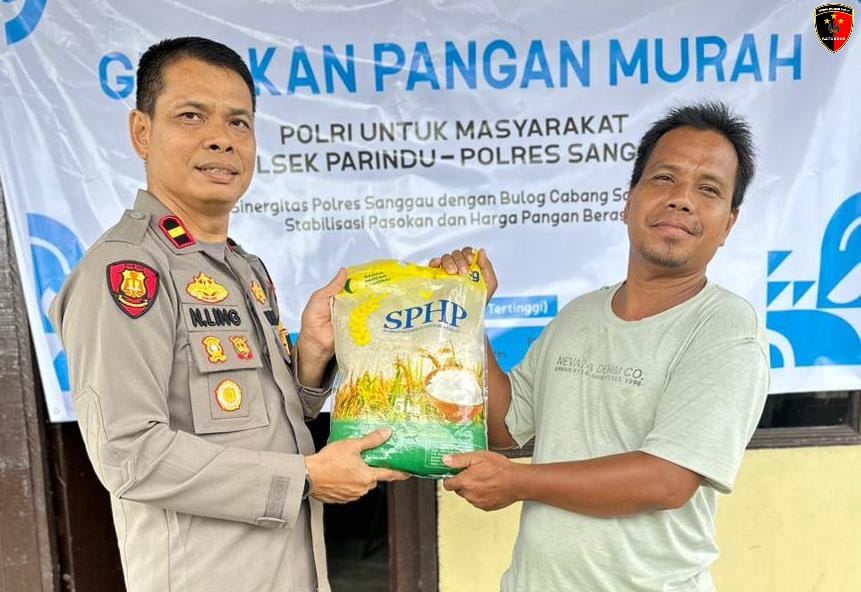 Kegiatan ini dipimpin langsung oleh Kapolsek Parindu, Ipda N. Ling, S.H., M.Sos., bersama seluruh personel Polsek Parindu. GPM merupakan hasil kolaborasi antara Polres Sanggau dan Bulog Cabang Sanggau dalam rangka menekan laju inflasi daerah sekaligus menjaga pasokan dan kestabilan harga pangan, khususnya beras, di wilayah Kabupaten Sanggau.