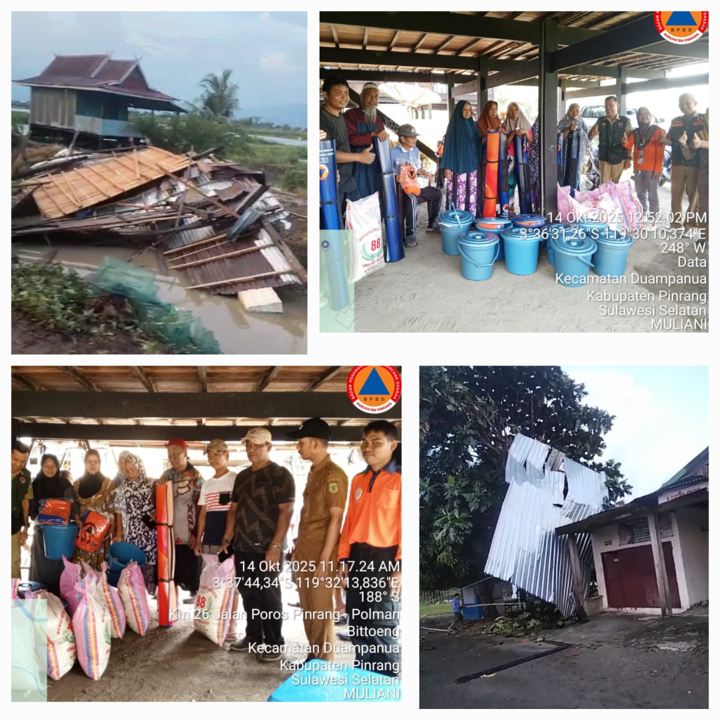 Bencana alam tersebut, terjadi di, Kelurahan Bittoeng dan Kelurahan Data Kecamatan Duampanua, Kabupaten Pinrang dan sebanyak 5 rumah warga di Kelurahan Bittoeng mengalami kerusakan dan 9 rumah di Kelurahan Data mengalami kerusakan di bagian atap dan 3 diantaranya rusak berat.