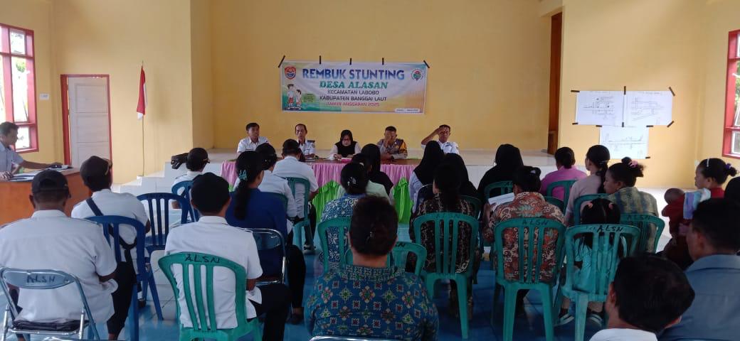 Pemerintah Desa Alasan Kecamatan Labobo menggelar kegiatan Rembug Stunting pada Rabu 26 maret 2025, bertempat di Gedung Serbaguna Desa Alasan. Acara ini di hadiri oleh Babinkamtibmas, Pendamping lokal Desa, perwakilan masyarakat dan tokoh-tokoh di desa.