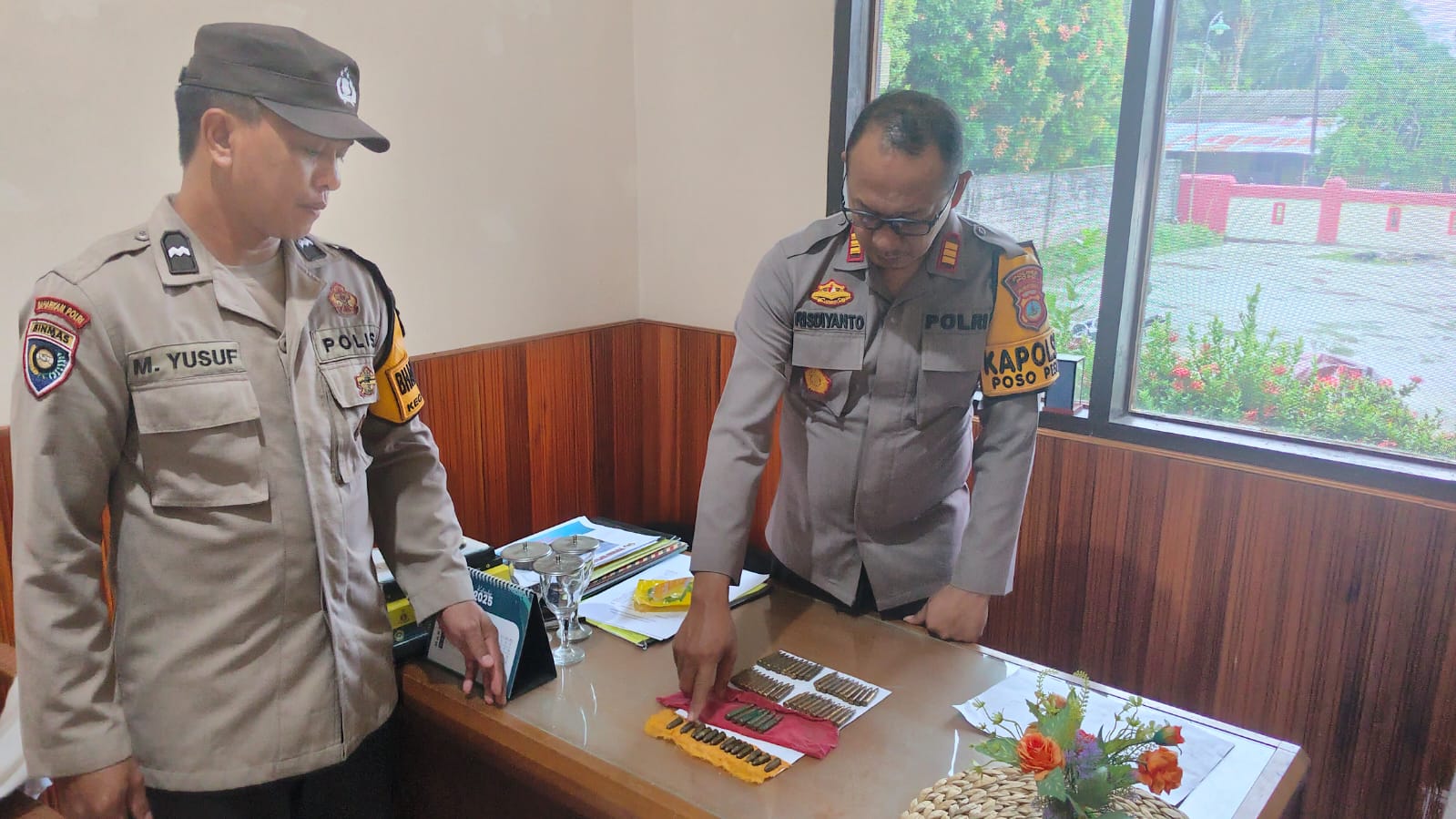 Kapolsek Poso Pesisir AKP Risdiyanto mengatakan, barang bukti berupa 46 butir amunisi kaliber 5,6 mm dan 13 butir amunisi kaliber 9 mm diserahkan langsung oleh warga melalui Bhabinkamtibmas Desa Lape, Aipda Muh. Yusuf.