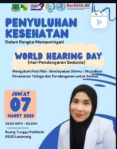Civitas RSUD Lasinrang Pinrang salah satu yang nampak memperingati hari pendengaran sedunia dengan menggelar penyuluhan kesehatan, bertempat di ruang tunggu poliklinik Rumah sakit Lasinrang Pinrang, Pada Sabtu 8 Maret 2025.