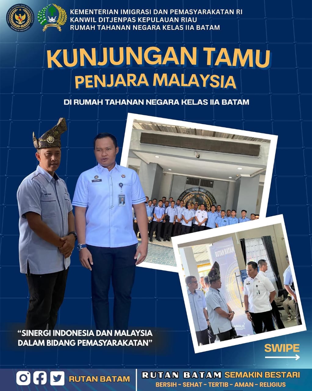 “Kunjungan ini menjadi momentum penting untuk bertukar wawasan dan memperkuat sinergi antara Indonesia dan Malaysia dalam bidang pemasyarakatan, khususnya dalam upaya pembinaan dan reintegrasi sosial bagi warga binaan,” ujar Kepala Rutan Batam.