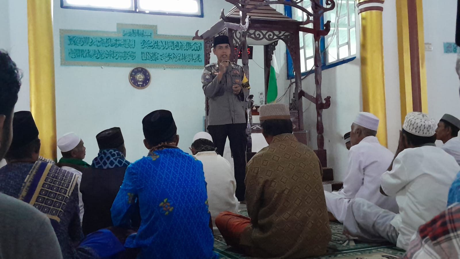 Setelah selesai menjalankan ibadah, Bripka Jabbar mengajak jamaah untuk berdiskusi mengenai pentingnya menjaga keamanan dan kedamaian di lingkungan sekitar.