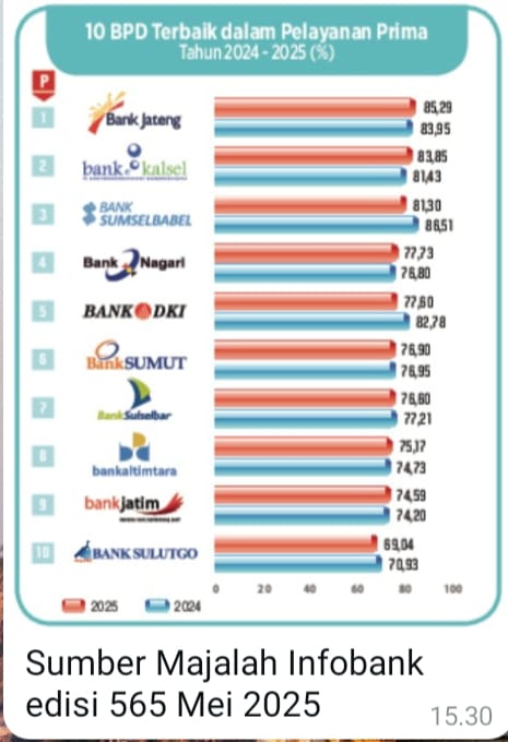 Bank Jateng berhasil menempati posisi teratas, diikuti oleh Bank Kalsel yang melesat dari