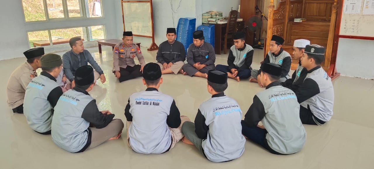 Tim Da’i Polri yang terdiri dari Ipda Ilham Sriwan, Aiptu Ridwan, dan Aipda Sofyan Al Liosi, menyampaikan pesan-pesan penting terkait keamanan dan ketertiban masyarakat (Kamtibmas) kepada para santri.