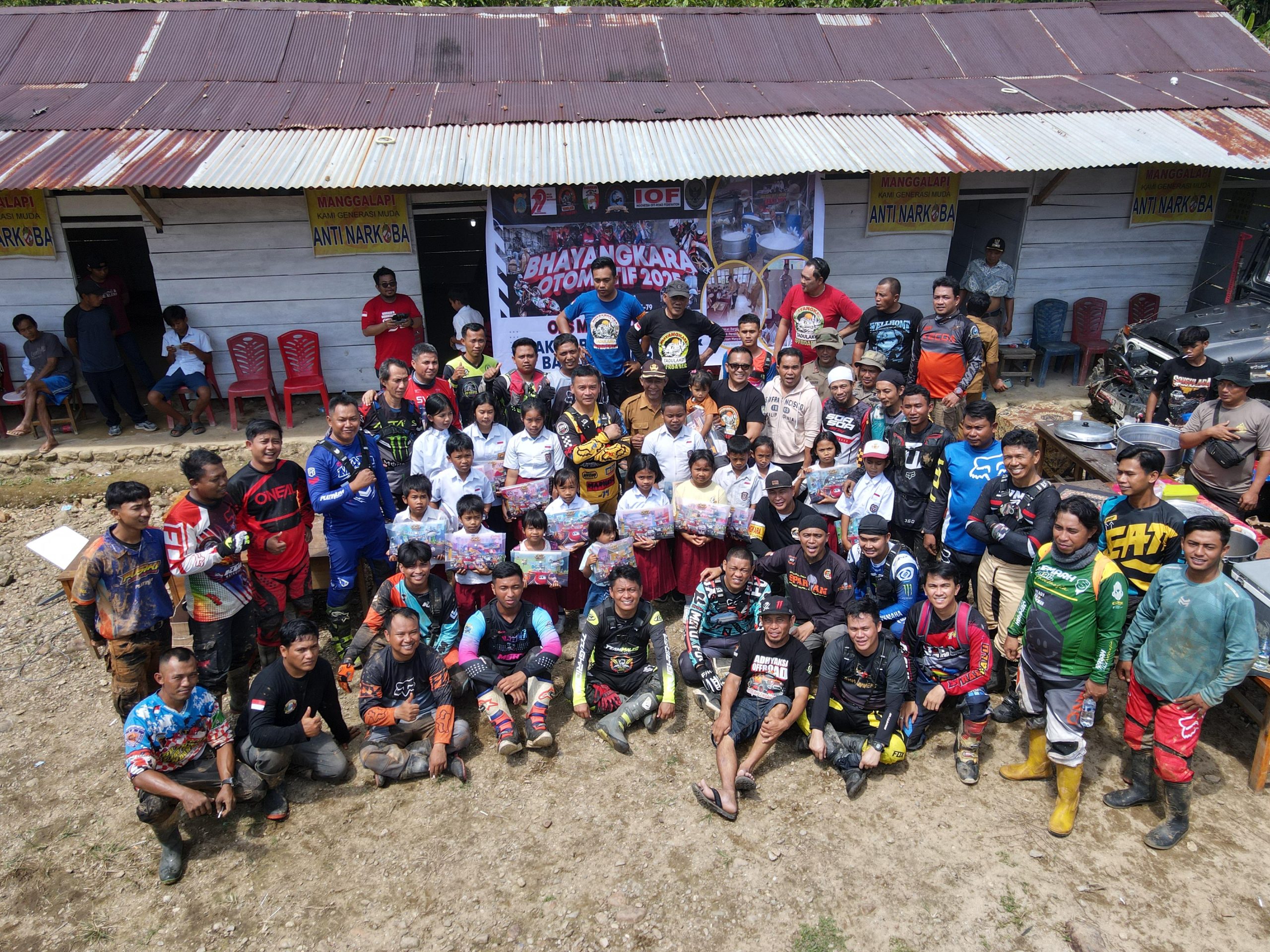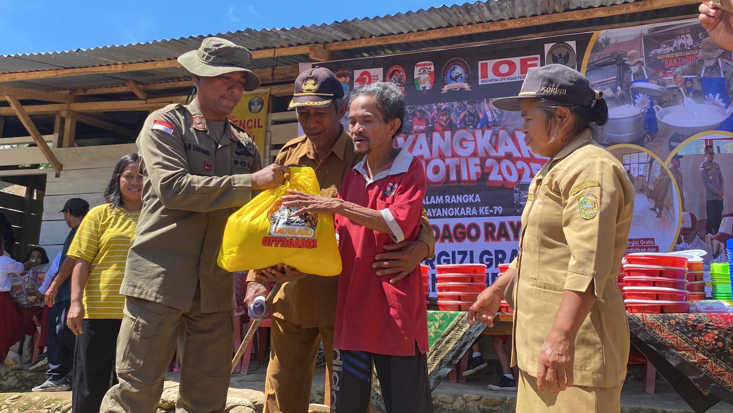 Menyambut Hari Bhayangkara ke-79 dengan tema “Polri Untuk Masyarakat”, Satgas Operasi Madago Raya menggandeng Bhayangkara Tadulako Offroader (BTOF) Sulteng dan Palu Trail Community (Patrac) untuk menggelar kegiatan Makan Bergizi Gratis (MBG) Mandiri di SDN Terpencil Manggalapi, Desa Sausu Salubanga, Kabupaten Parigi Moutong, Sulawesi Tengah, Minggu (8/6/2025).