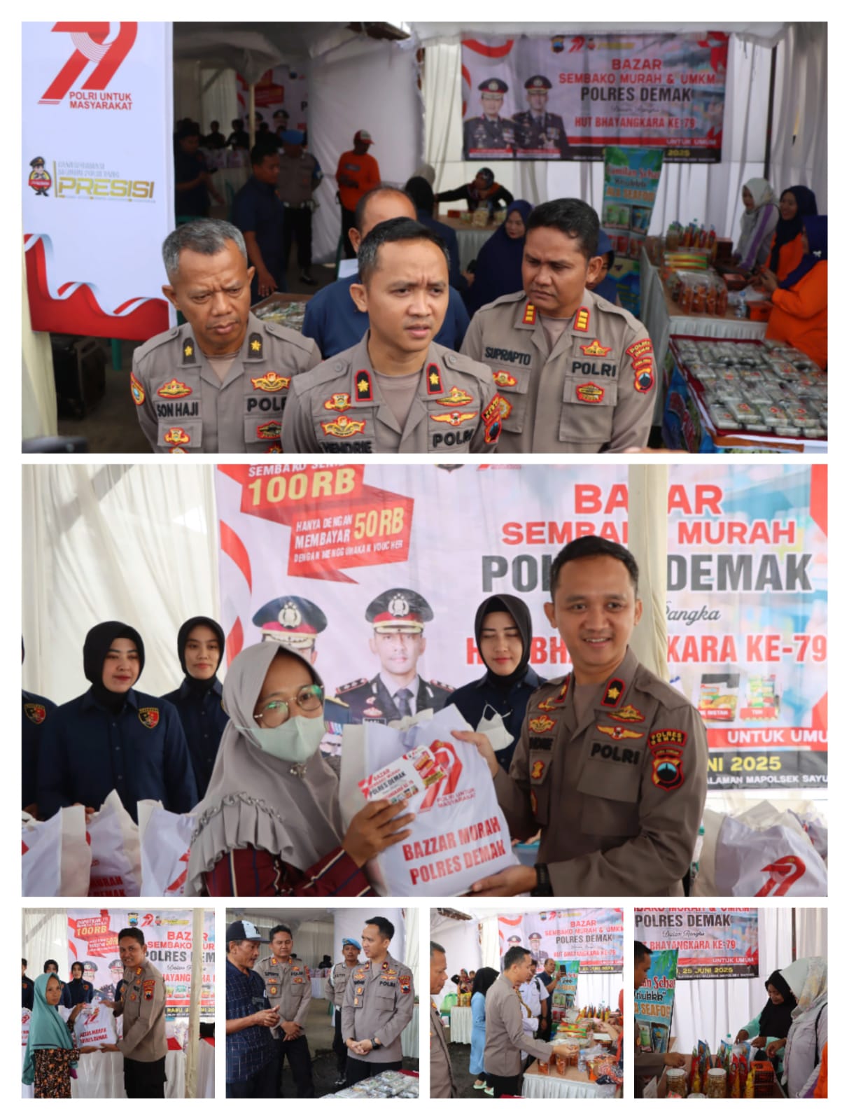 Kepolisian Resor (Polres) Demak, Jawa Tengah menggelar kegiatan pasar murah sembako dan bazar Usaha Mikro Kecil Menengah (UMKM) di Polsek Sayung, Rabu (25/6/2025). Acara itu bagian dari rangkaian peringatan Hari Bhayangkara ke-79.