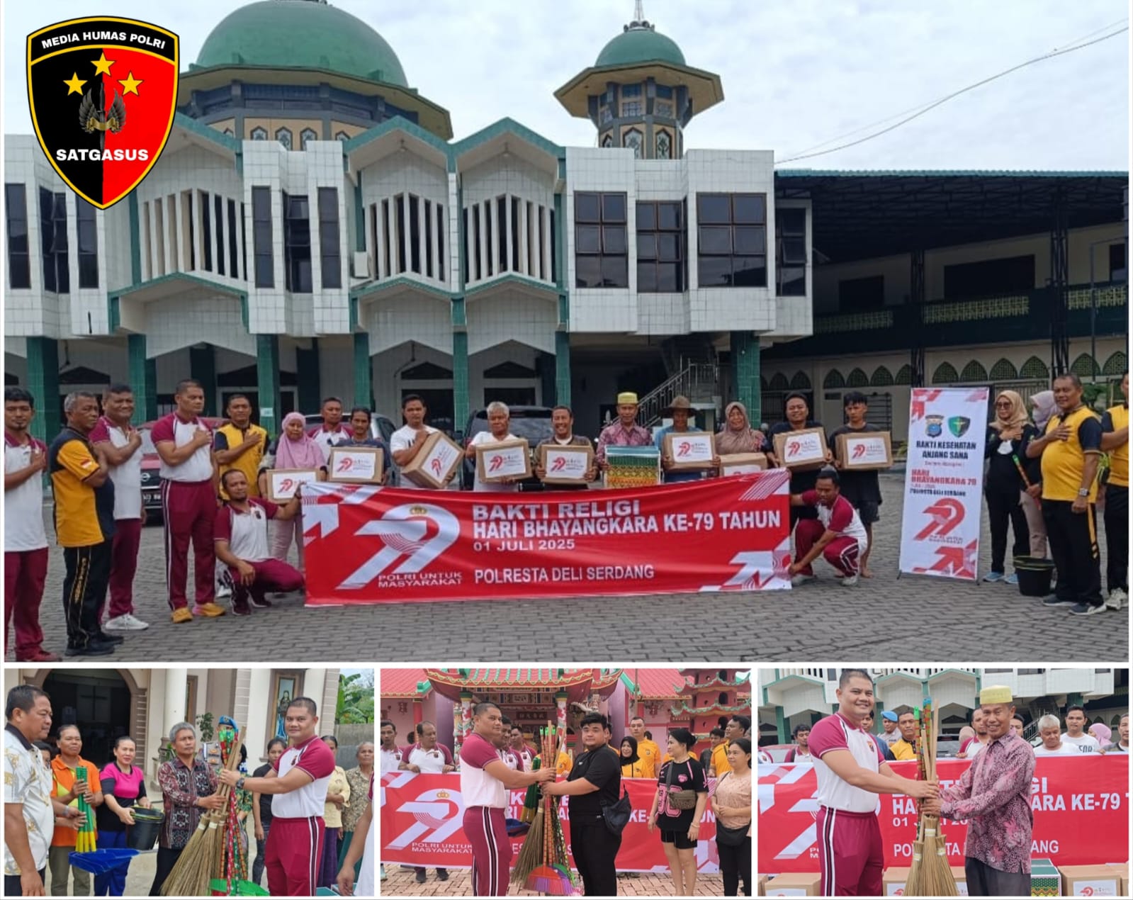 Dalam rangka menyambut Hari Ulang Tahun (HUT) Bhayangkara ke-79, Polresta Deli Serdang melaksanakan kegiatan Bhakti Religi di sejumlah rumah ibadah, Jumat (20/06/2025) pagi.