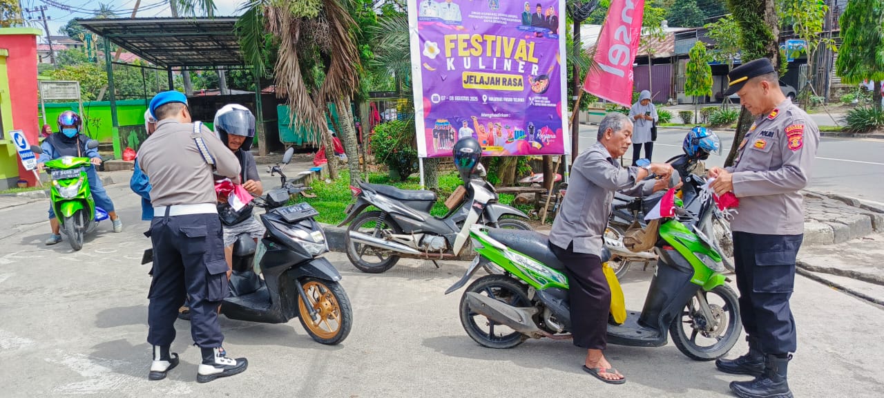 Menyambut Hari Ulang Tahun ke-80 Kemerdekaan Republik Indonesia, Polsek Bontang Barat menggelar aksi pembagian Bendera Merah Putih kepada masyarakat, Kamis (7/8/2025) pagi.