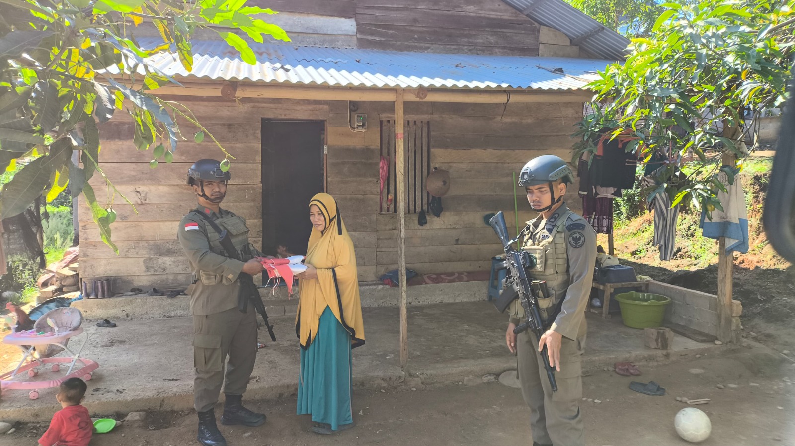 Menjelang peringatan Hari Ulang Tahun (HUT) ke-80 Kemerdekaan Republik Indonesia, personel Satgas III Preventif Ops Madago Raya menggelar kegiatan pembagian bendera merah putih dan umbul-umbul kepada warga binaan serta masyarakat di Dusun Tamanjeka, Kecamatan Poso Pesisir, Kabupaten Poso, Senin (4/8/2025).
