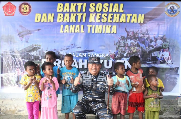 Dalam rangka menyambut HUT TNI yang ke 80, Lanal Timika melaksanakan Bakti Sosial di Kampung Bahari Nusantara, pada Kamis, 2/10/2025. Kampung Bahari Nusantara (KBN) merupakan kampung binaan Lanal Timika, yang terletak di kawasan Jl. Poros Timika – Poumako Cendrawasih, Distrik Mimika Timur.