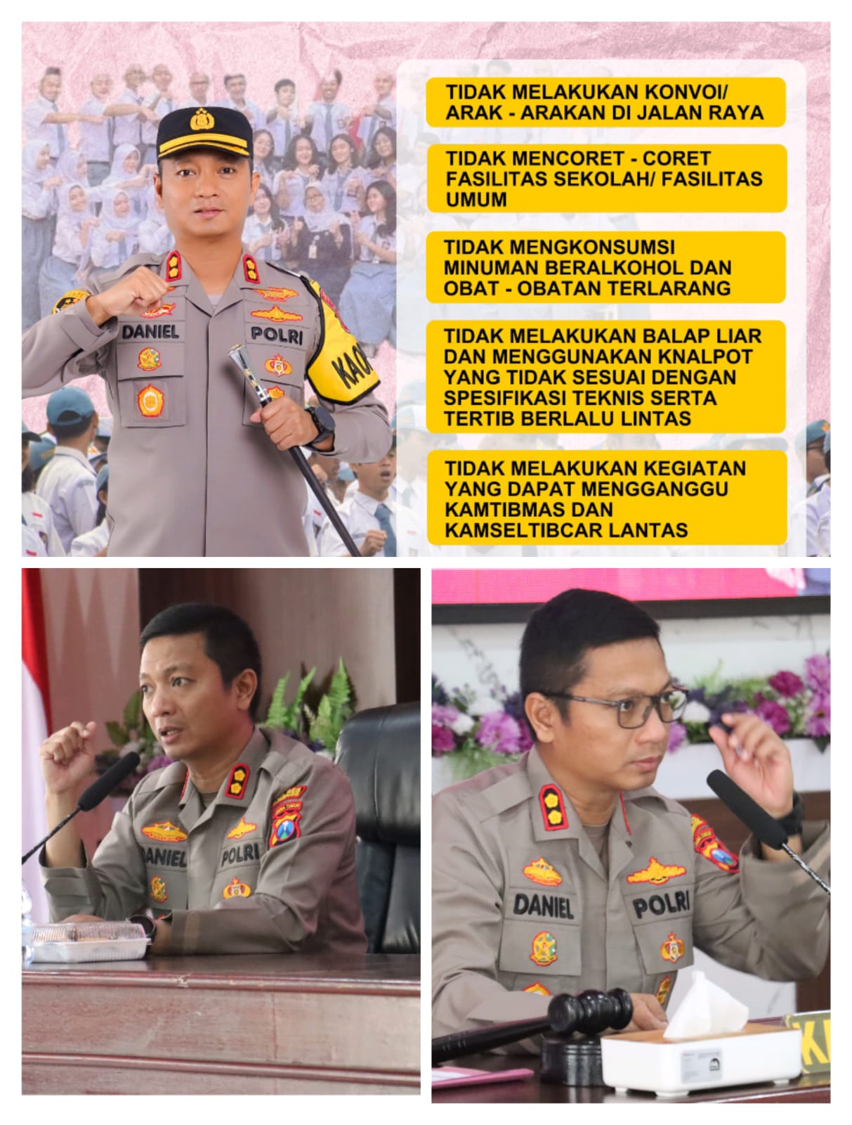 “Saya sudah menginstruksikan kepada para Kapolsek jajaran untuk melakukan komunikasi, koordinasi dan kolaborasi dengan para Kepala Sekolah atau pihak sekolah untuk mengingatkan kepada para pelajar untuk merayakan kelulusan dengan cara yang baik tanpa mengganggu ketertiban masyarakat,” Tambah Daniel.