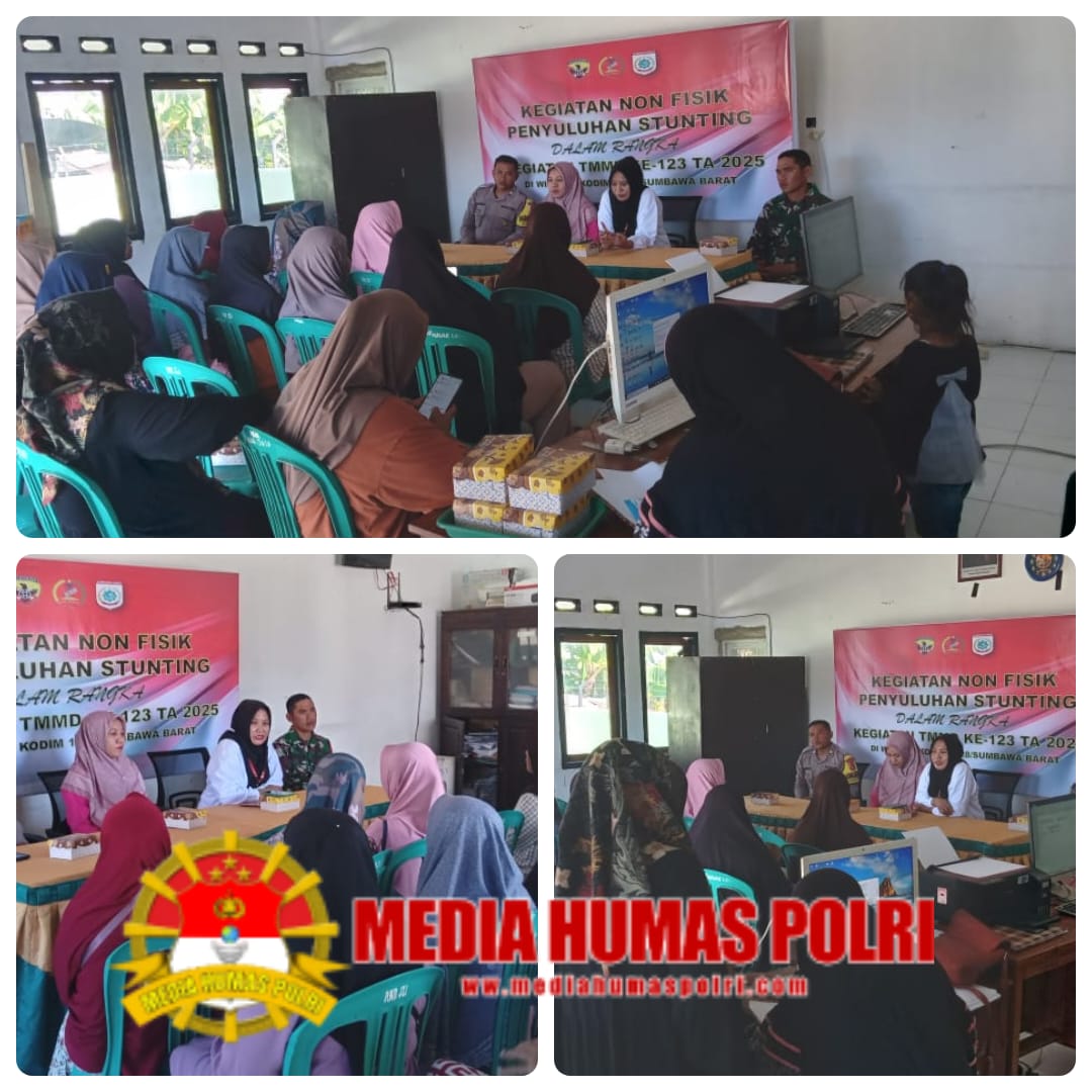 Tercapainya sasaran non fisik TNI Manunggal Membangun Desa (TMMD) ke-123 Kodim 1628/Sumbawa Barat diantaranya dengan melaksanakan penyuluhan/sosialisasi Stunting kepada masyarakat yang diselenggarakan di Aula Kator Desa Batu Putih, Kecamatan Taliwang, Kabupaten Sumbawa Barat Jum’at (28/02/25).