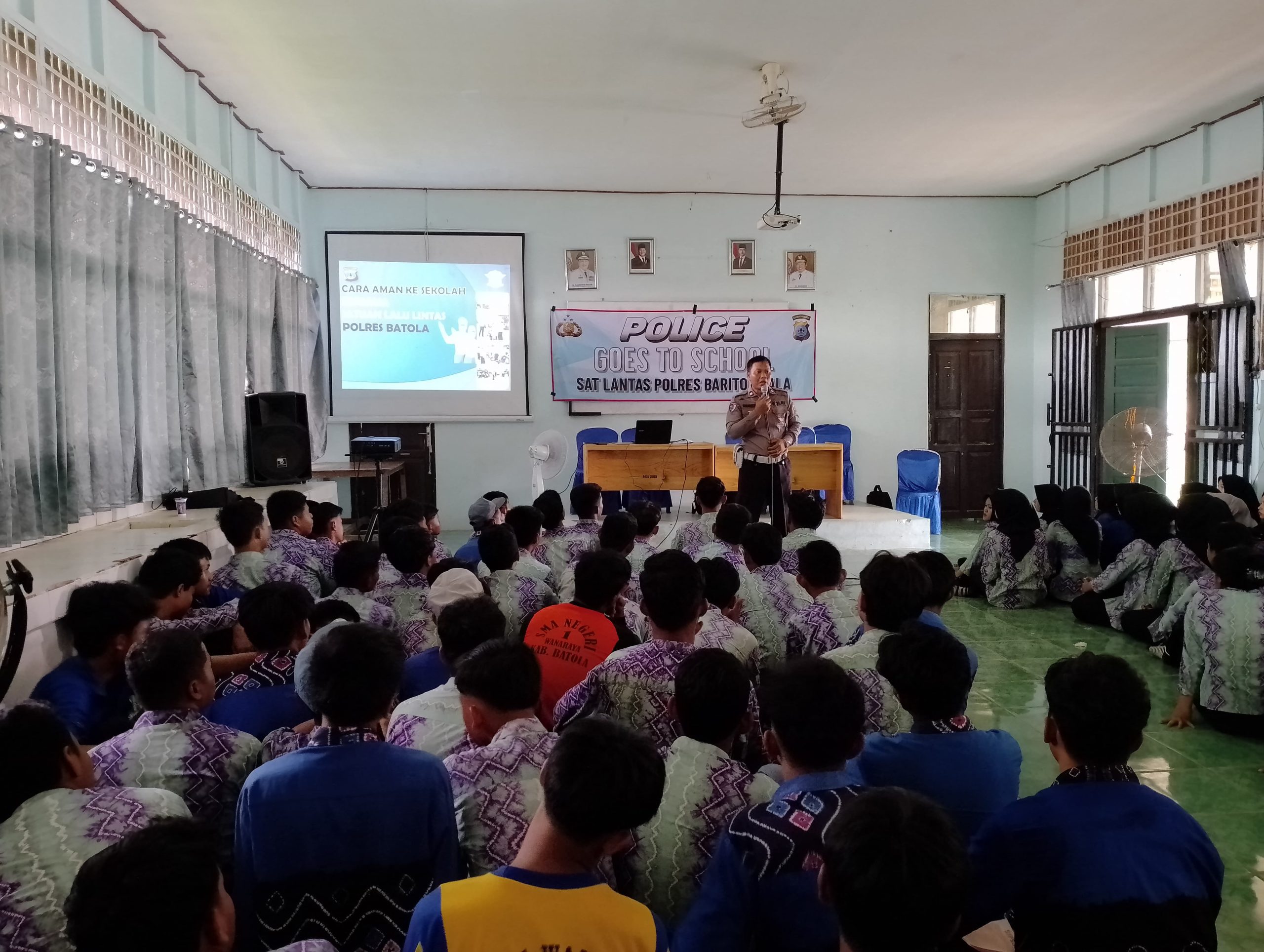 Satuan Lalu Lintas (Sat Lantas) Polres Barito Kuala (Batola) menggelar kegiatan *Police Goes To School* di SMAN 1 Wanaraya pada Kamis (22/5/2025). Kegiatan yang berlangsung pukul 09.00–11.00 WITA ini diikuti oleh 100 siswa/siswi sebagai upaya edukasi tertib berlalu lintas dan pencegahan kecelakaan di kalangan pelajar.
