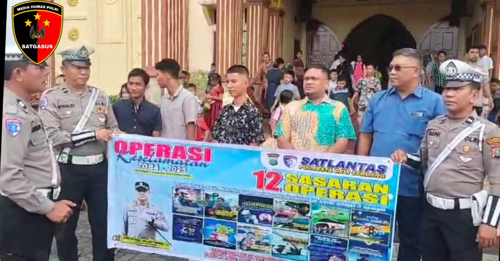 Dalam rangka Operasi Keselamatan Toba 2025, personel Satuan Lalu Lintas Polresta Deli Serdang melaksanakan sosialisasi dan edukasi keselamatan berkendara kepada para jemaat Gereja HKBP di Jalan Imam Bonjol, Kecamatan Lubuk Pakam, pada Minggu 16 Februari 2025.