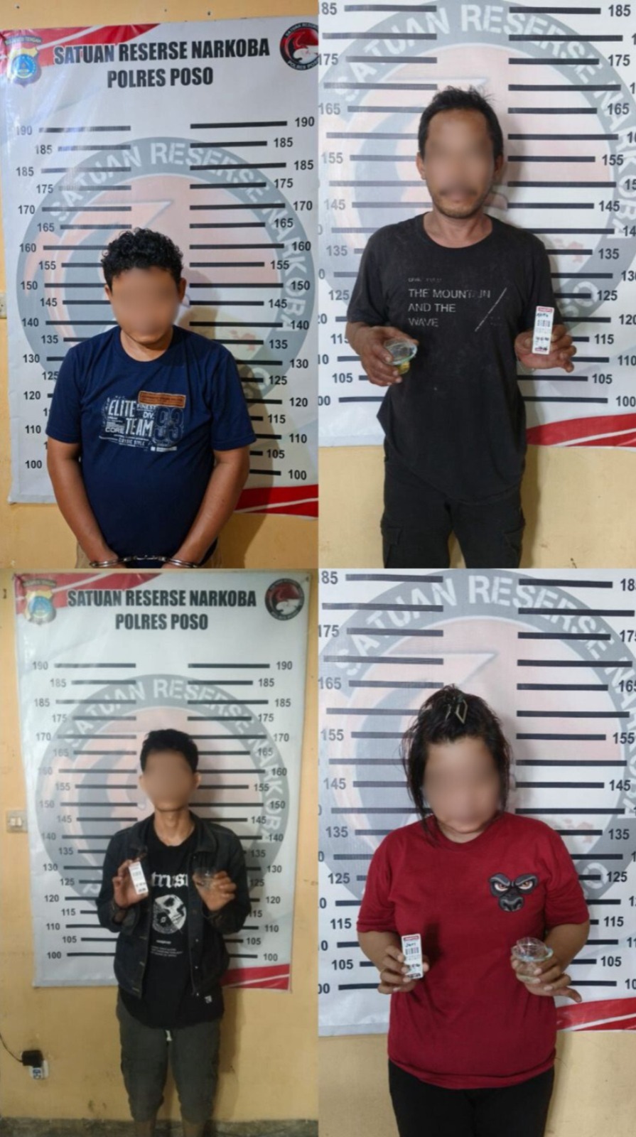 Anggota Opsnal Sat ResNarkoba Polres Poso yang dipimpin oleh Kasat Narkoba Polres Poso, IPTU Herfian S.H, MH., bersama Tim Opsnal Sat Resnarkoba Polres Poso berhasil mengamankan 4 orang pengedar sabu di Jalan Wolter Mongisidi, Kelurahan Bonesompe, Kecamatan Poso Kota Utara, Kabupaten Poso.