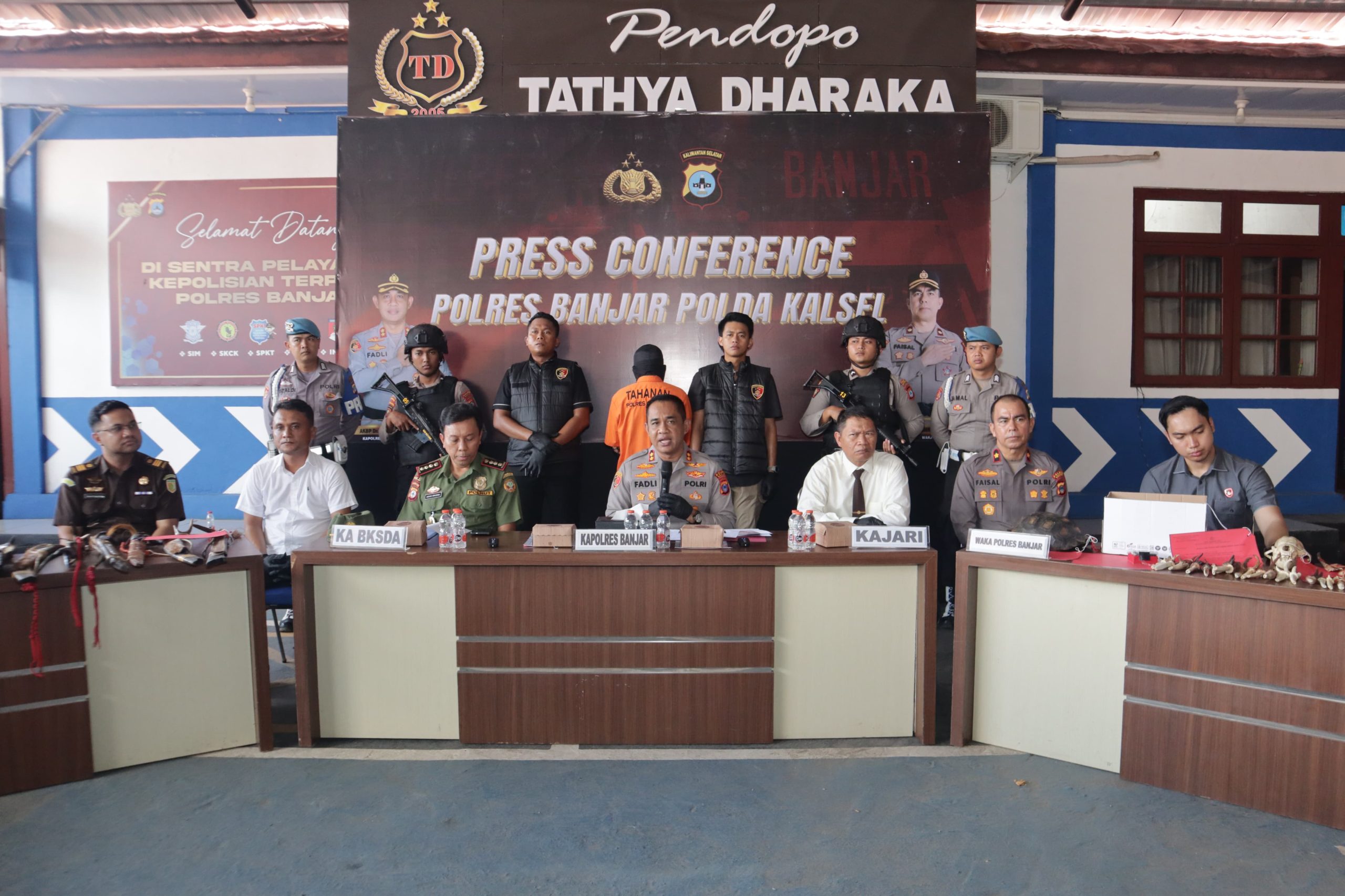 Satuan Reserse Kriminal (Sat Reskrim) Polres Banjar bersama Balai Konservasi Sumber Daya Alam (BKSDA) Kalimantan Selatan berhasil mengungkap kasus perdagangan bagian tubuh satwa liar yang dilindungi. Pengungkapan tersebut dilakukan di salah satu toko di kawasan pertokoan Permata Cahaya Bumi Selamat (CBS) Martapura, pada Selasa (17/6/2025).