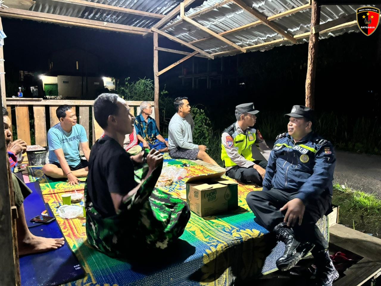 Dalam kegiatan sambang tersebut, petugas menyampaikan pesan-pesan kamtibmas kepada warga yang tengah bertugas ronda malam.