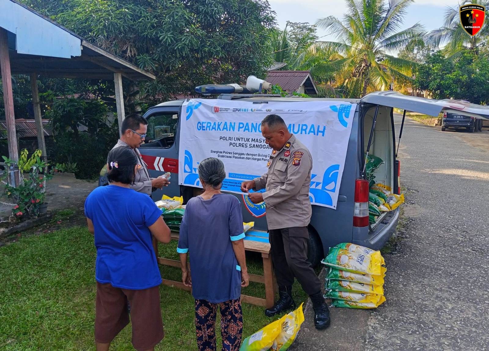 Kegiatan yang dimulai pukul 08.00 WIB tersebut berlangsung di halaman rumah warga setempat dan dipimpin langsung oleh KBO Satbinmas Polres Sanggau, Iptu Sugianto, bersama personel Satbinmas lainnya. Puluhan masyarakat tampak antusias datang untuk mendapatkan bahan pangan dengan harga terjangkau.